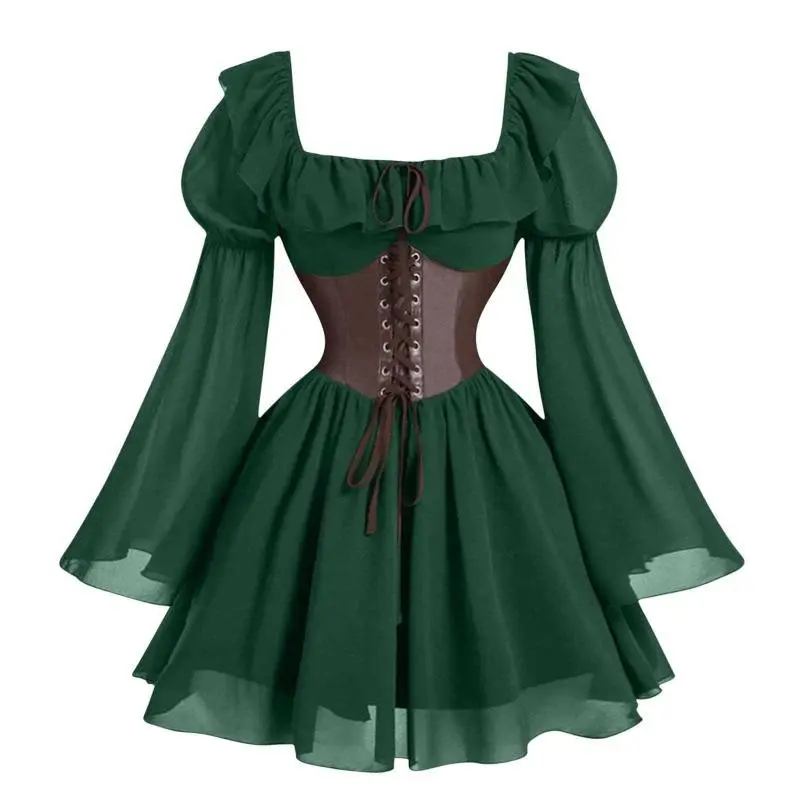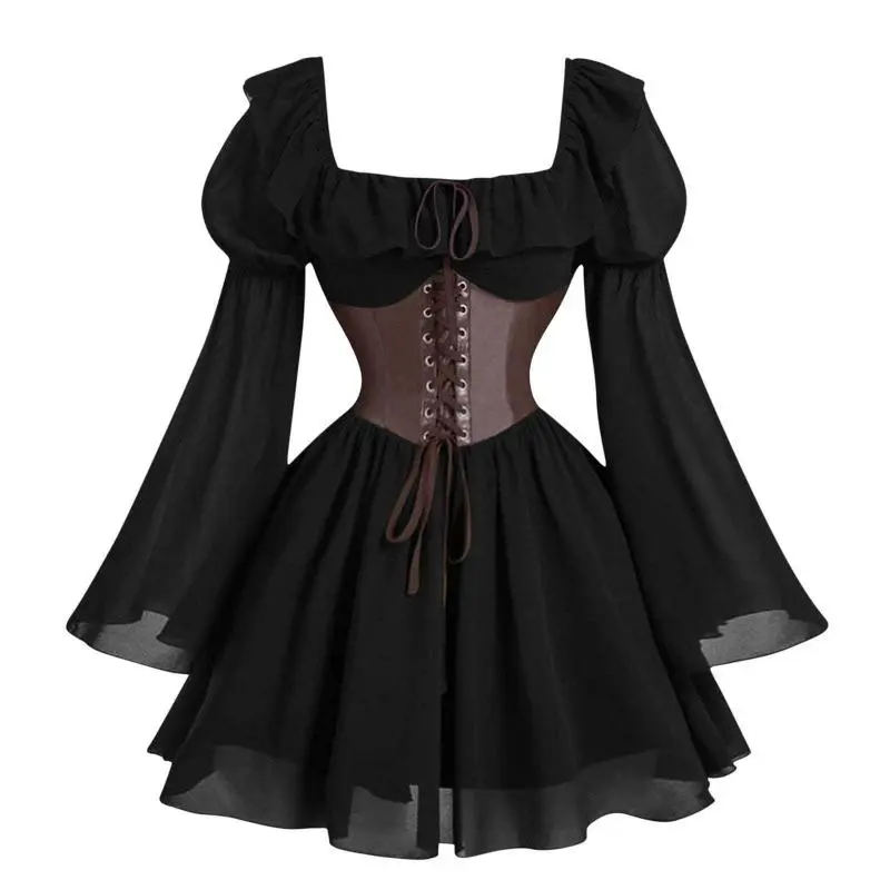 Renaissance Period Medieval New Long Sleeved Women's Bubble Sleeve Dress Halloween Fashion Retro New Party Waist Cinched Skirt