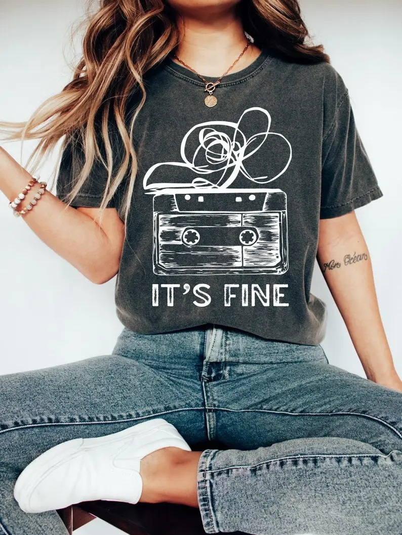 Retro Cassette Tape T‑Shirt, 100% Cotton It’s Fine Graphic Tee, 90s Music Shirt, Funny Tape Humor Top, Comfy Outfit