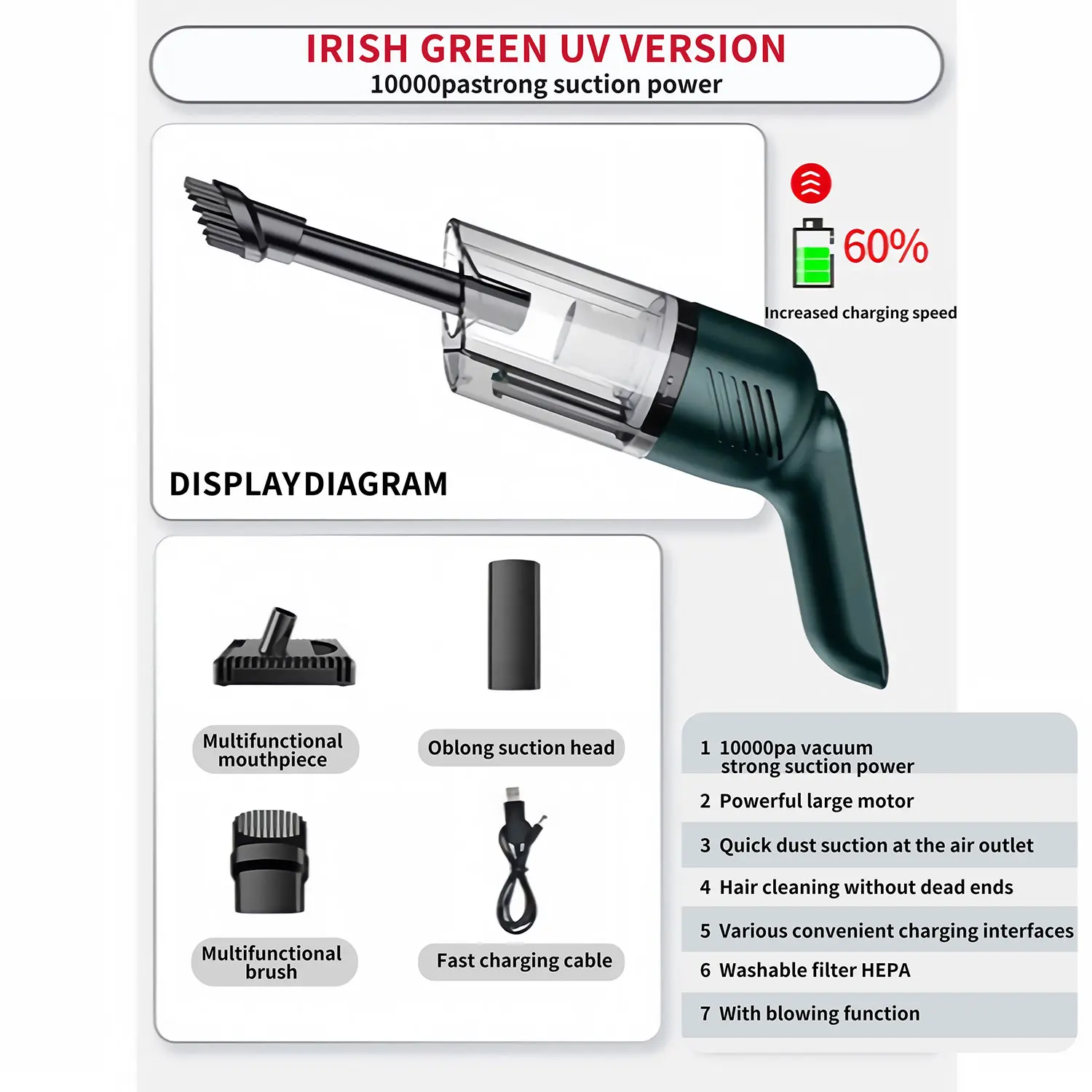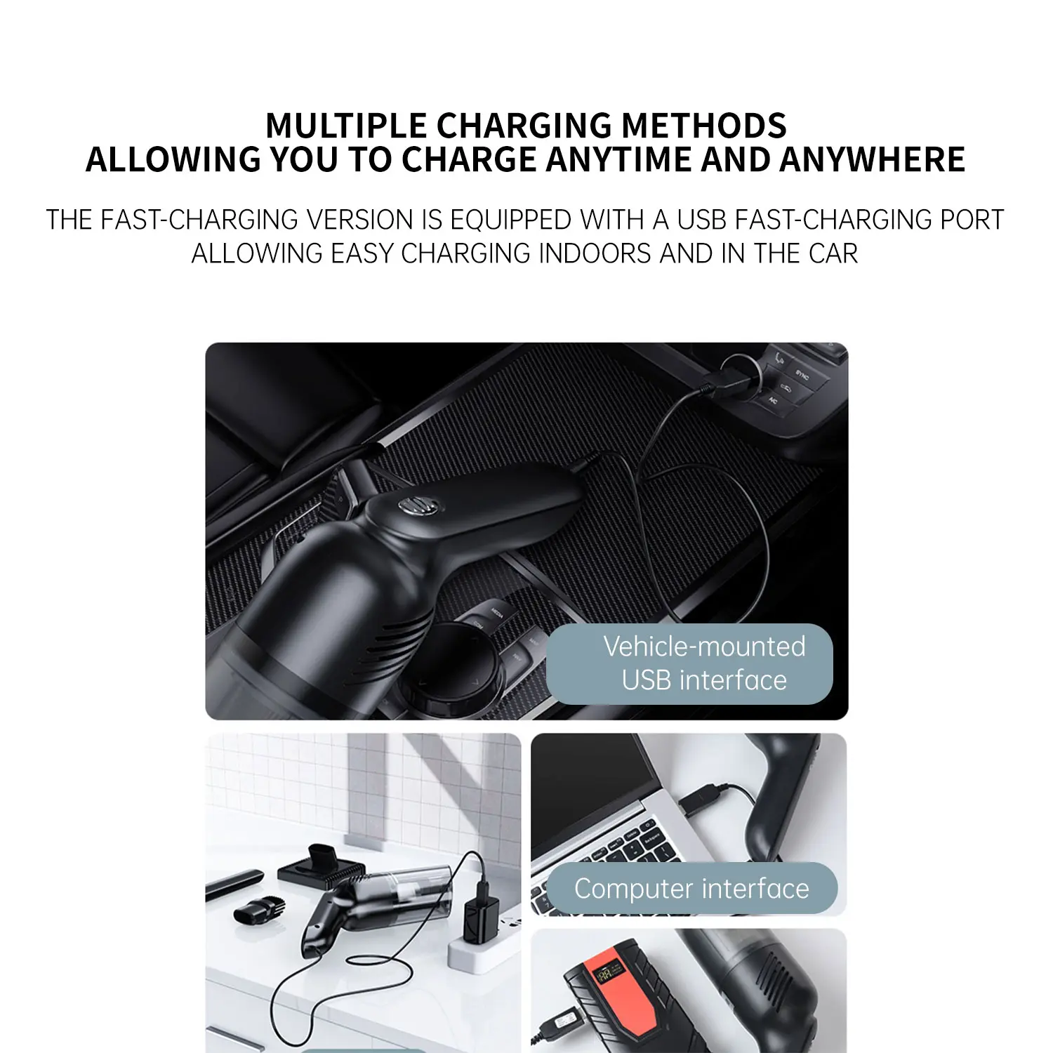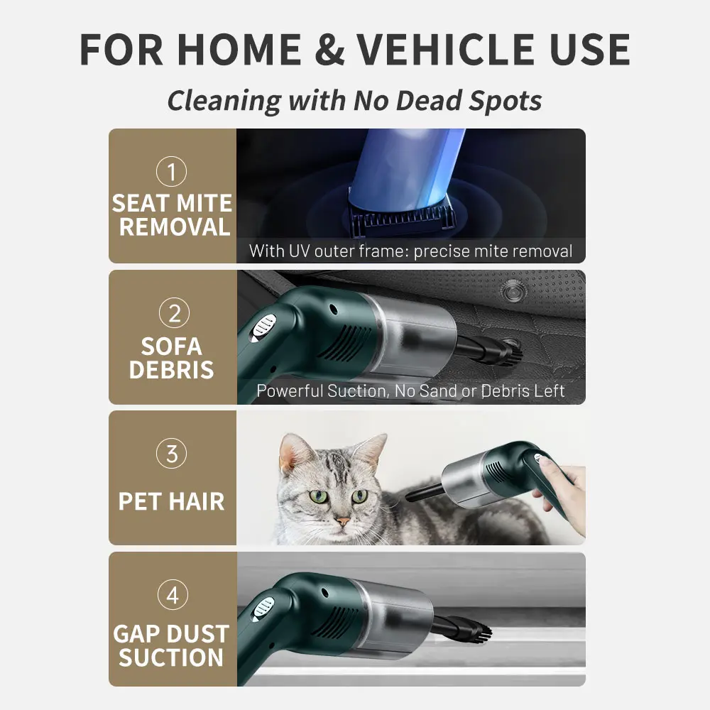 ·【Rechargeable Battery & Fast Charging】The electric vacuum cleaner features a built-in 4000mAh battery with a fast-charging port. It can be easily charged via a car charger, power bank, laptop, or wall outlet. It takes only 3 hours to fully charge. This reusable vacuum cleaner is a perfect, eco-friendly alternative to compressed air canisters, saving you both money and time.