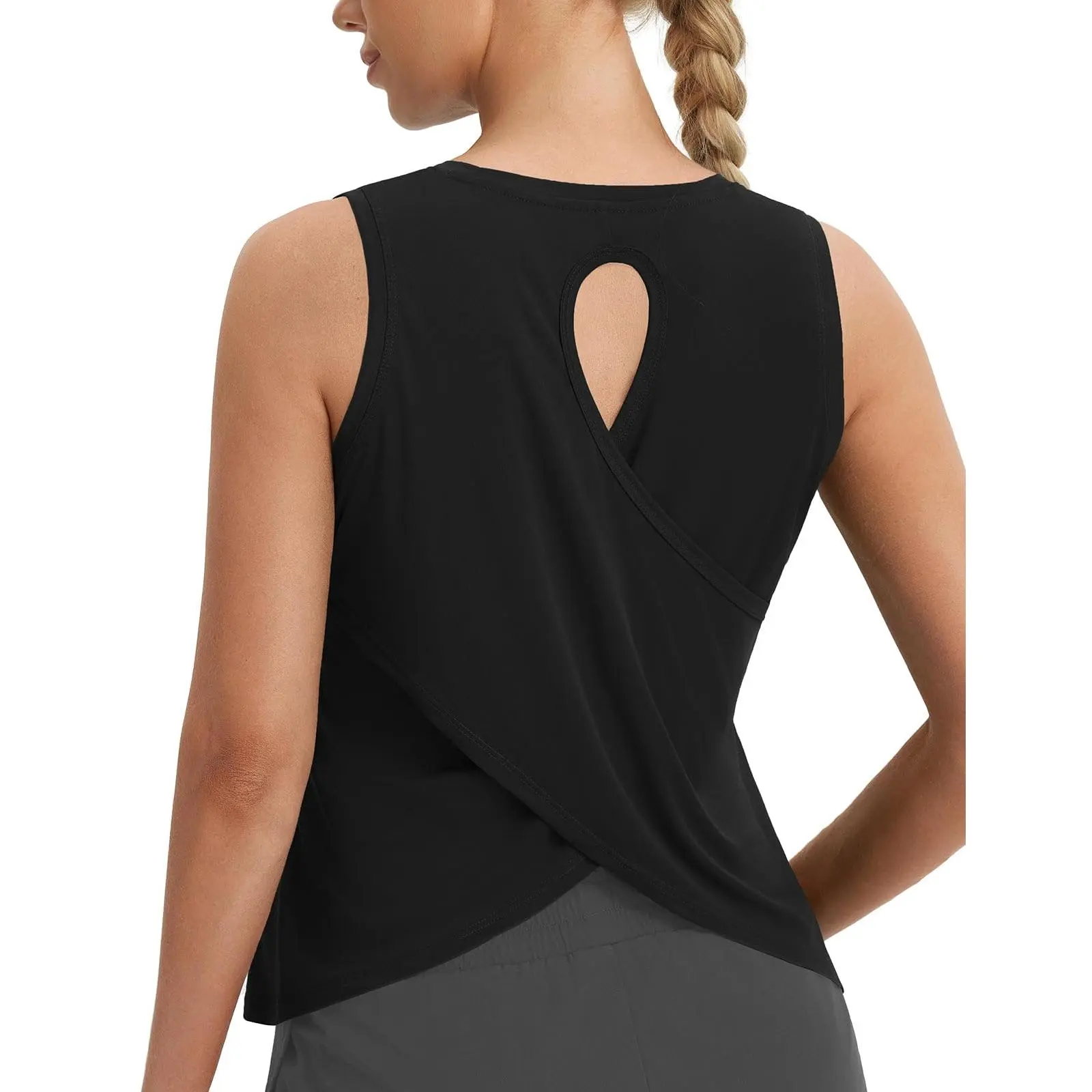 Baleaf Womens Open Back Workout Tops Loose Fit Athletic Tank Tops Sleeveless Flowy Running Shirts UPF 50+ Gym Yoga Activewear