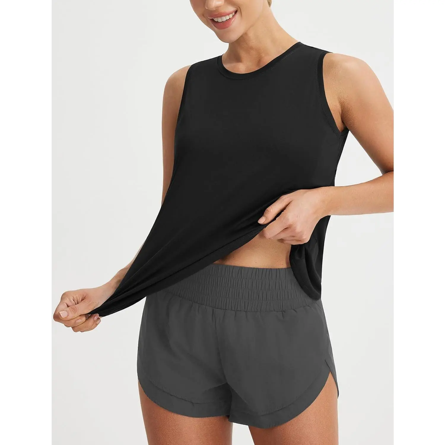 Baleaf Women's UPF 50+ Workout Tank Top Lightweight Sleeveless Gym Shirt Soft Loose Fit Athletic Top with Curved Hem for Yoga and Running