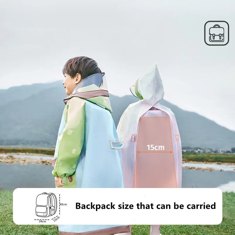 Size M Raincoat length 70 cm,Sleeve 48 cm,Chest 98 cm,Suitable for children height 95-105 cm Size L Raincoat length 76 cm,Sleeve 49 cm,Chest 100 cm,Suitable for children height 105-115 cm Size XL Raincoat length 82 cm,Sleeve 54 cm,Chest 104 cm,Suitable for children height 115-130 cm Size XXL Raincoat length 88 cm,Sleeve 61 cm,Chest 110 cm,Suitable for children height 130-145 cm