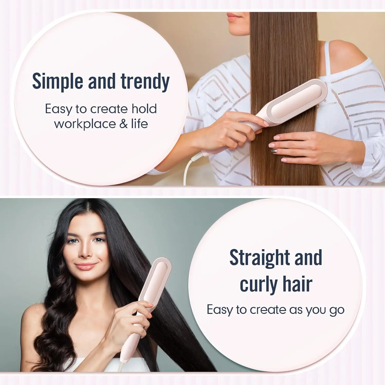 Innovative 2-in-1 Design: Combines the convenience of a comb with the power of a straightener in one. In just 10 seconds, the brush heats up, allowing you to create ultra-straight hair or stylish curls with ease. This innovative design is more efficient and simpler than traditional Hair Iron, making your morning routine quicker and your results more professional.