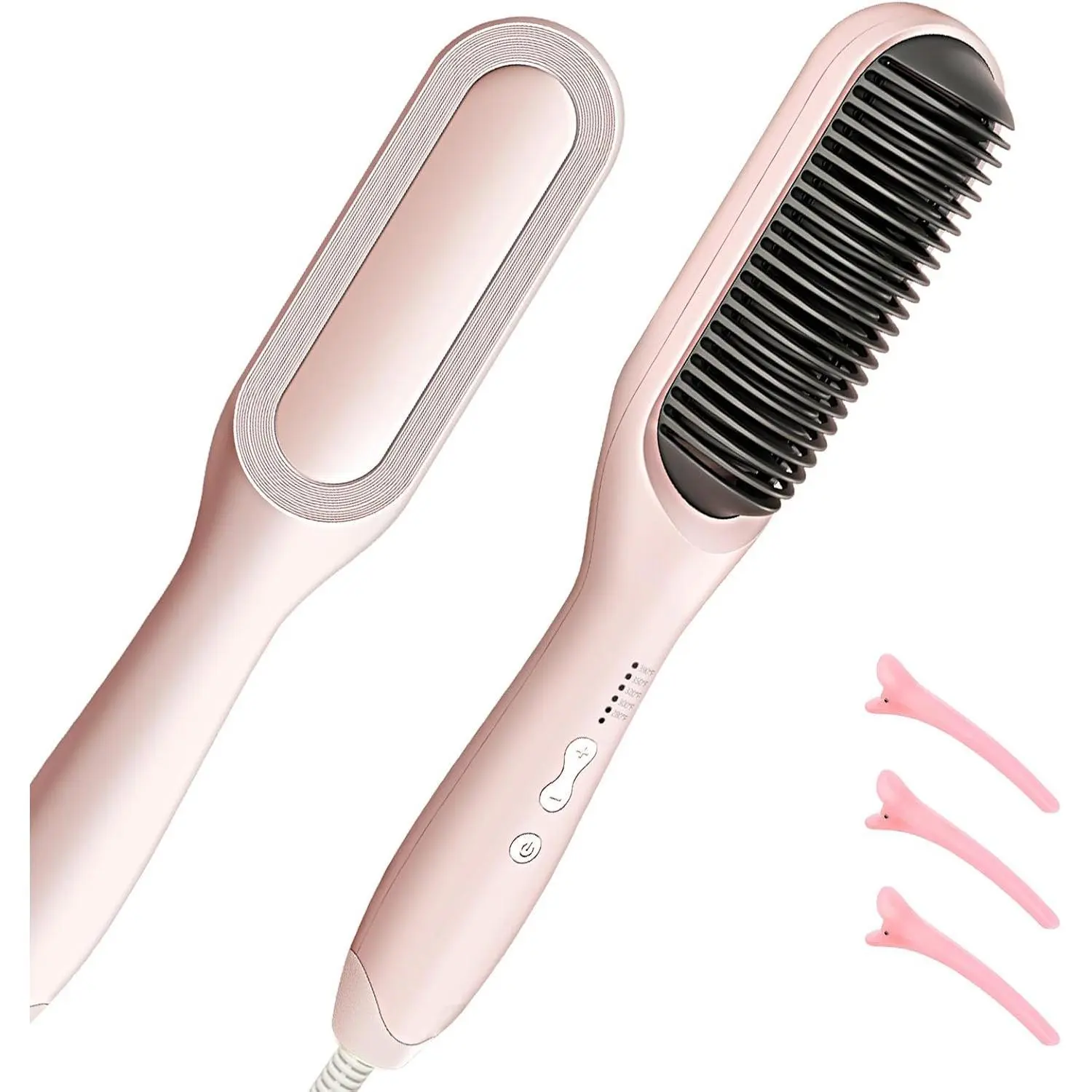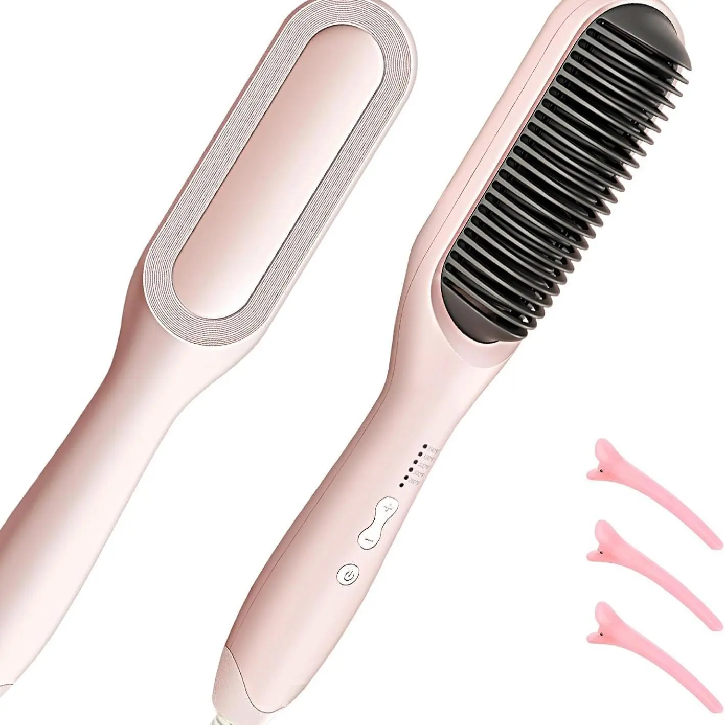 Adjustable Temperature Settings: No matter your hair type, the Hair Straightener Brush has you covered. With six adjustable temperature settings, you can find the perfect heat level for your hair. The one-button temperature control makes it easy to switch settings, saving you time and ensuring your hair looks its best.