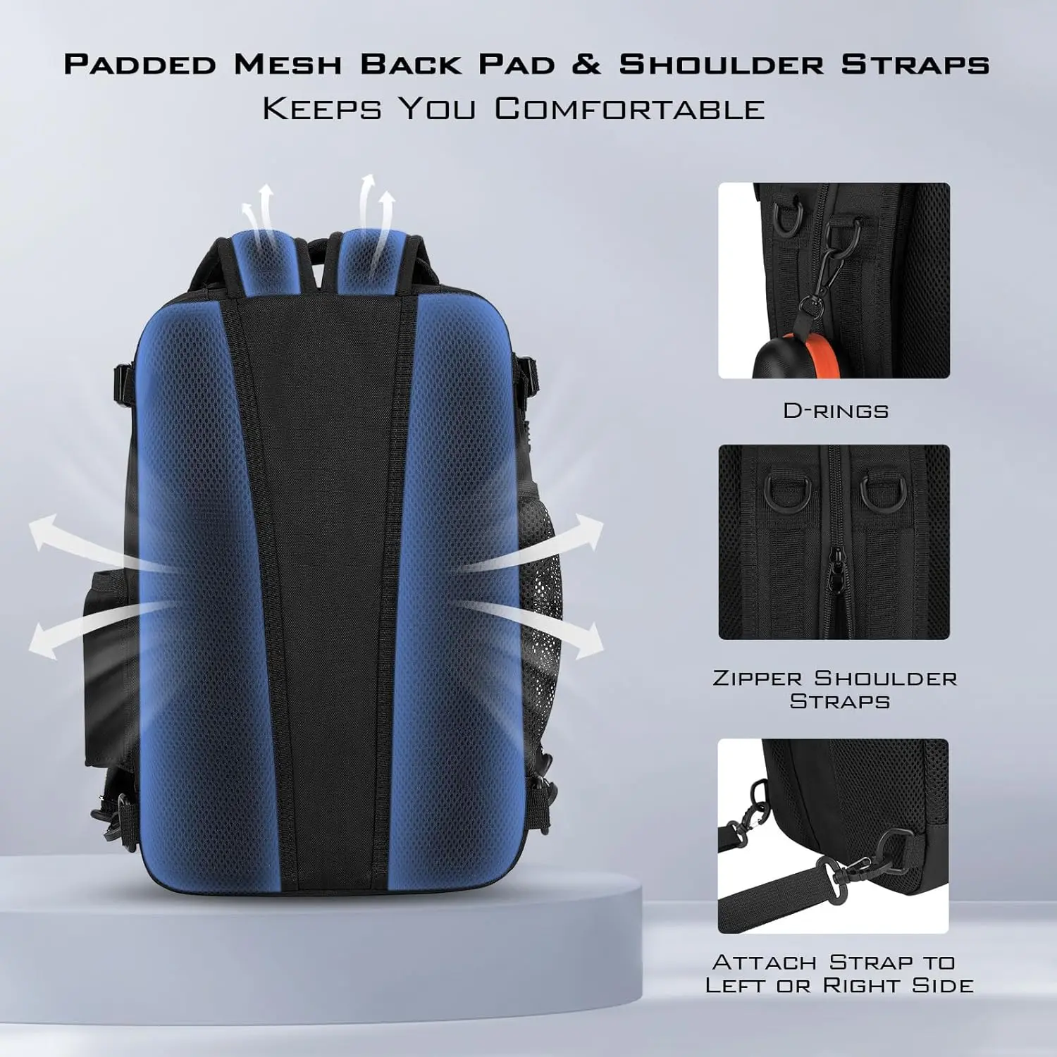 Lightweight tactical fishing sling backpack, perfect for anglers who love hiking, canoeing, kayaking, or SUP to remote fishing spots.