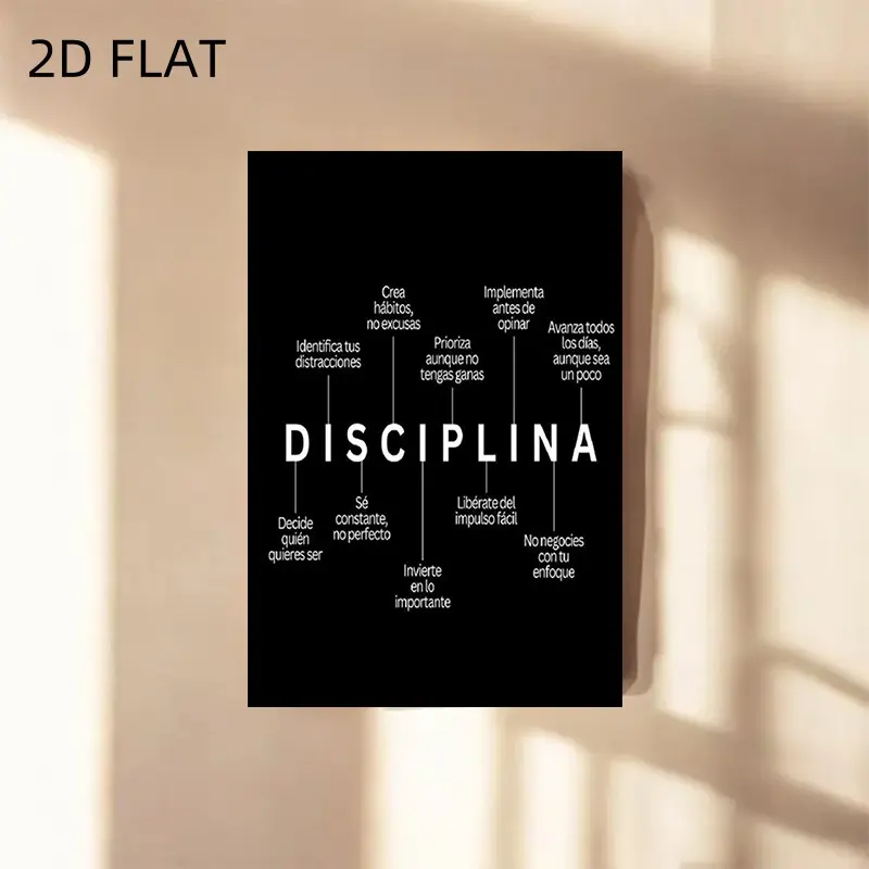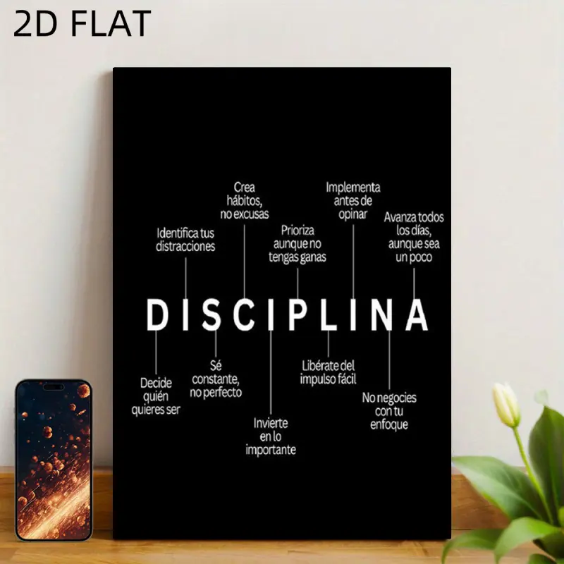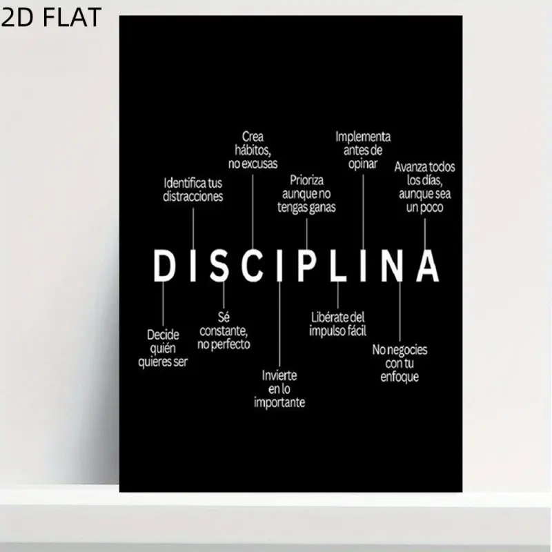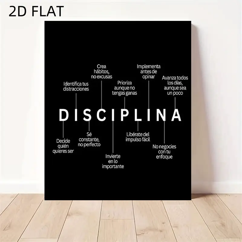 Bilingual Spanish-English Self-Discipline Motivation Wall Art - Wooden Frame Spanish Efficiency Chart Canvas Print - Self-Discipline Quotes and Goal-Setting Guide, suitable for home office decoration, classroom layout