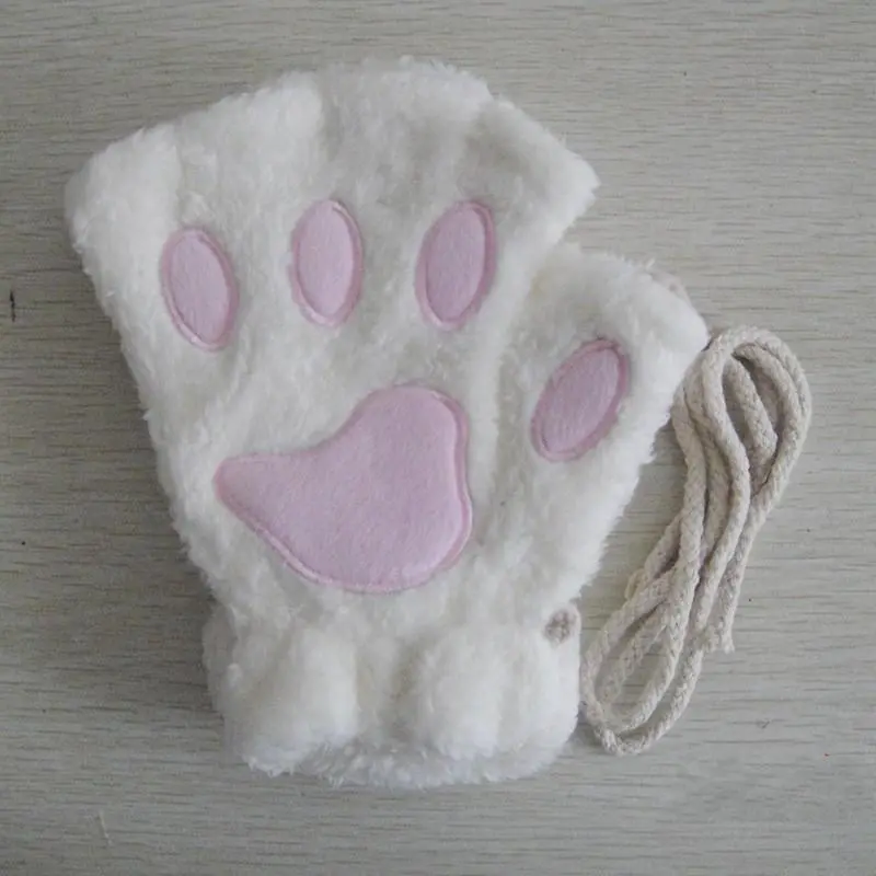 Cartoon Cute Cat Claw Paw Gloves Women Plush Mittens Warm Soft Plush Short Fingerless Fluffy Bear Cat Gloves Costume Half Finger