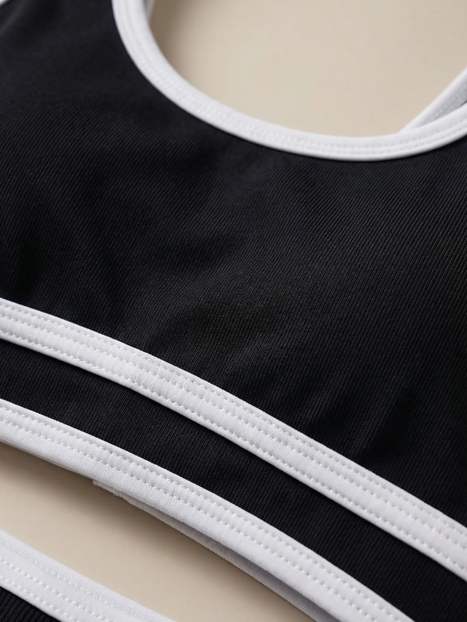 Sunkiss Sporty Ribbed Bikini Set for Women Scoop Neck High Cut Swimsuit Stretchy Polyester Bathing Suit Athletic Fit Trendy Active Swimwear Summer Beach Outfit