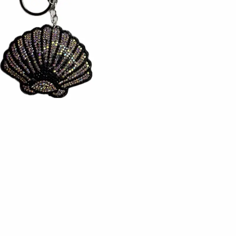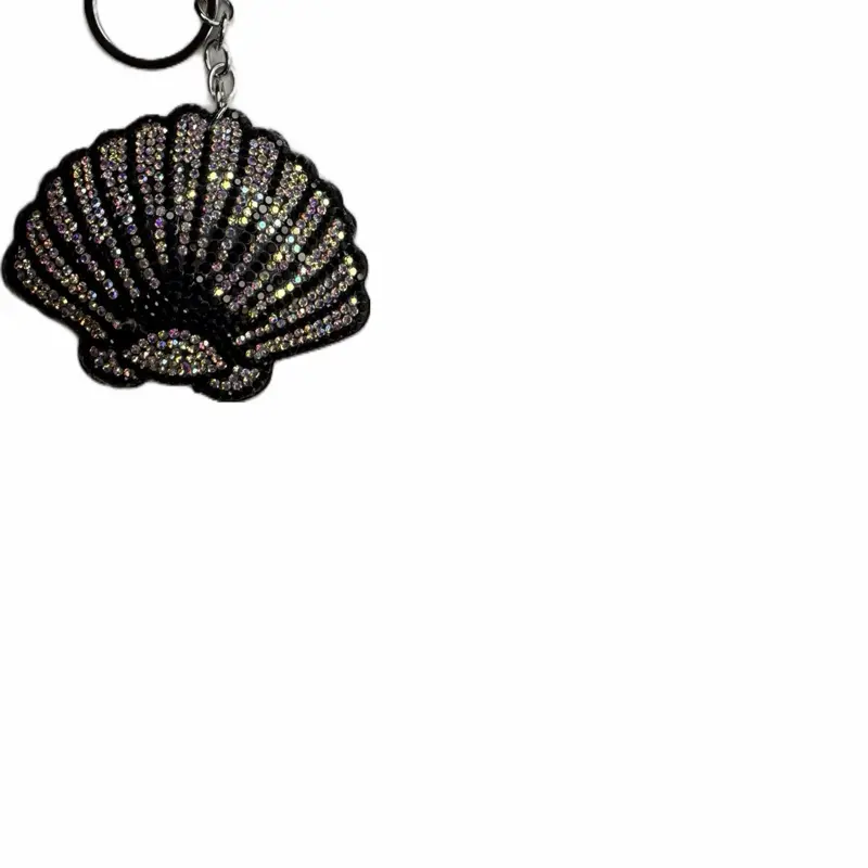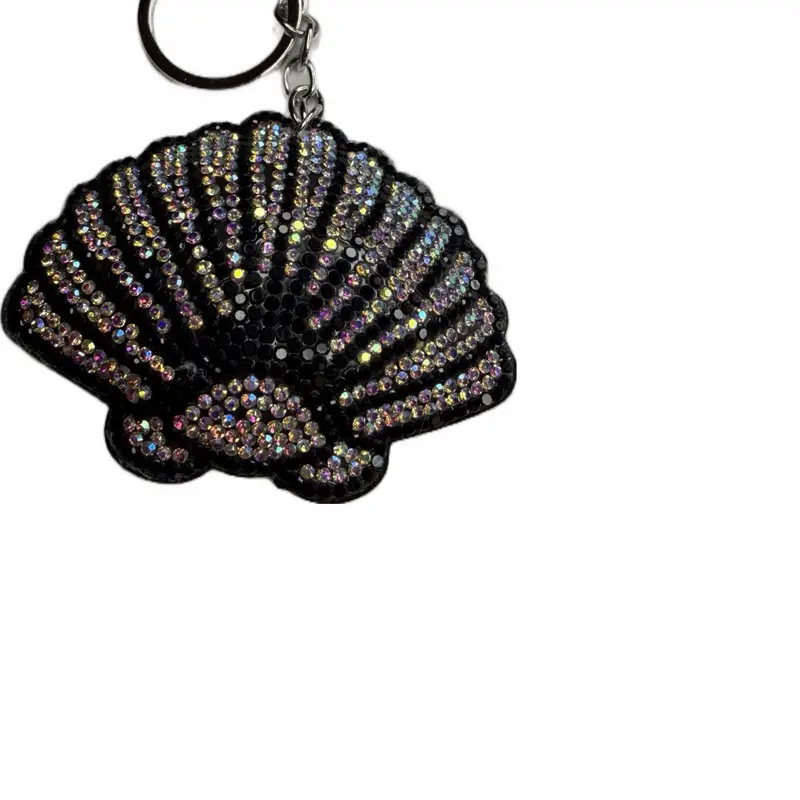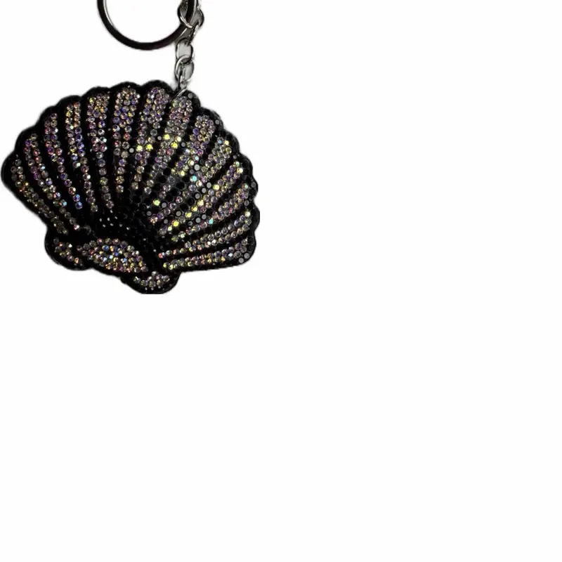 Sparkling Shell Keychain with Rhinestones, Black Color, Perfect for Keychains and Accessories