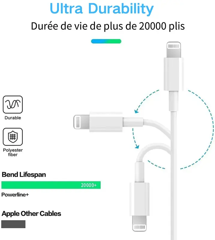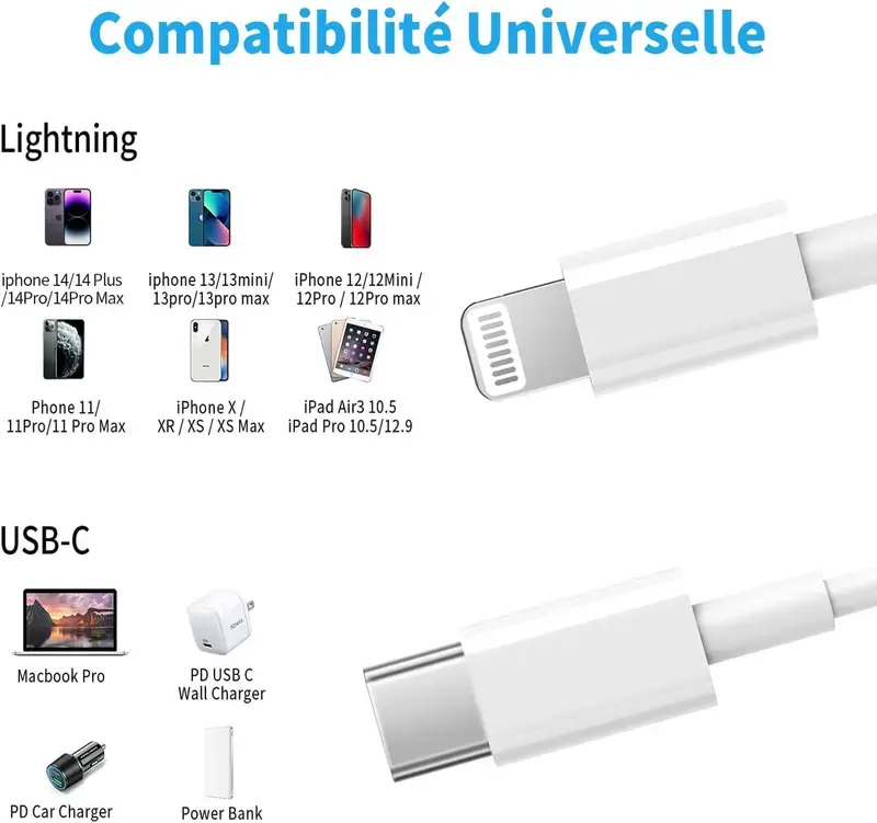 ·Compatibility: This 3-pack charger cable is compatible with iPhone 6, 7, 8, X, 11, 12, 13, 14 Pro Max, and iPad and Airpods. Perfect for fast charging and data needs. 🚀