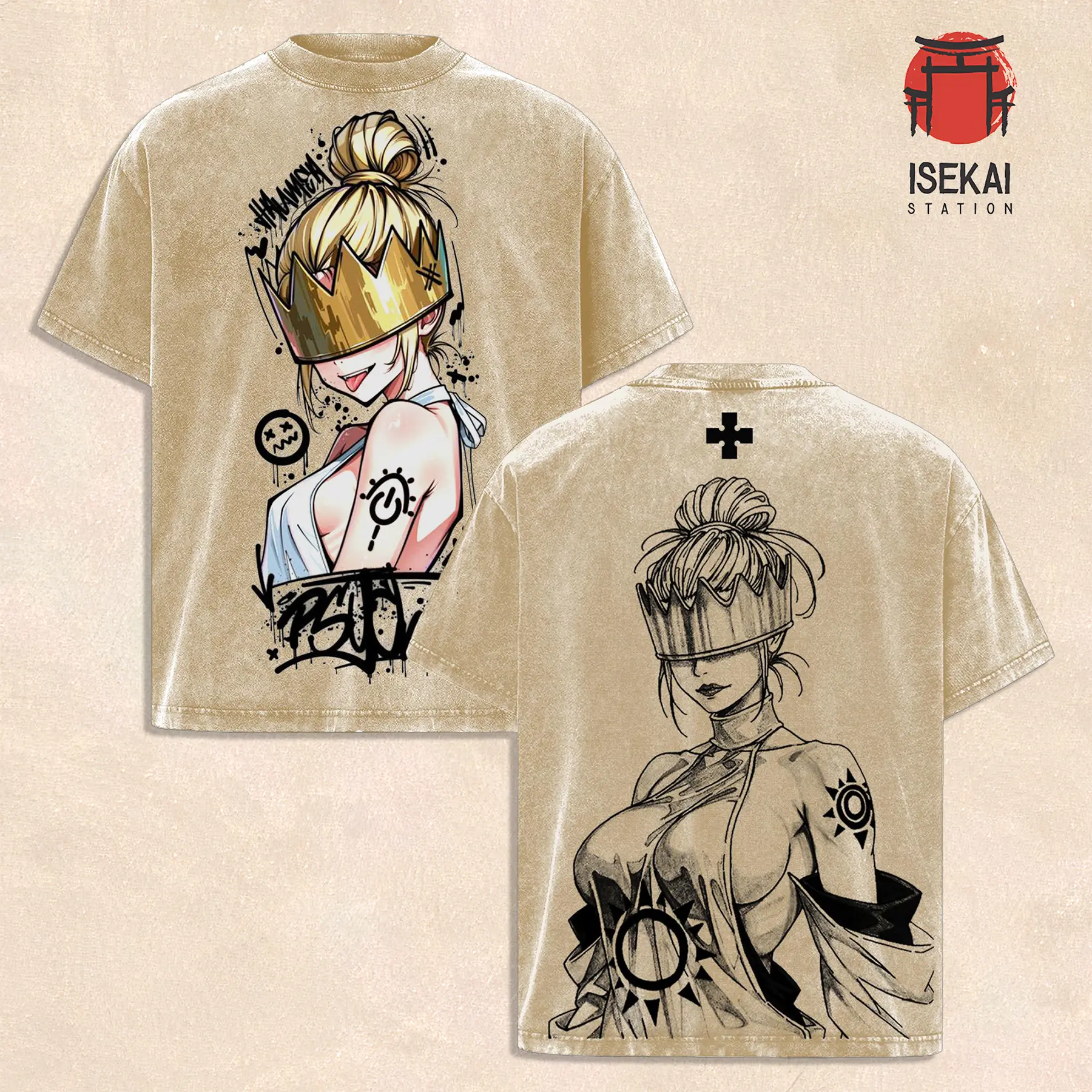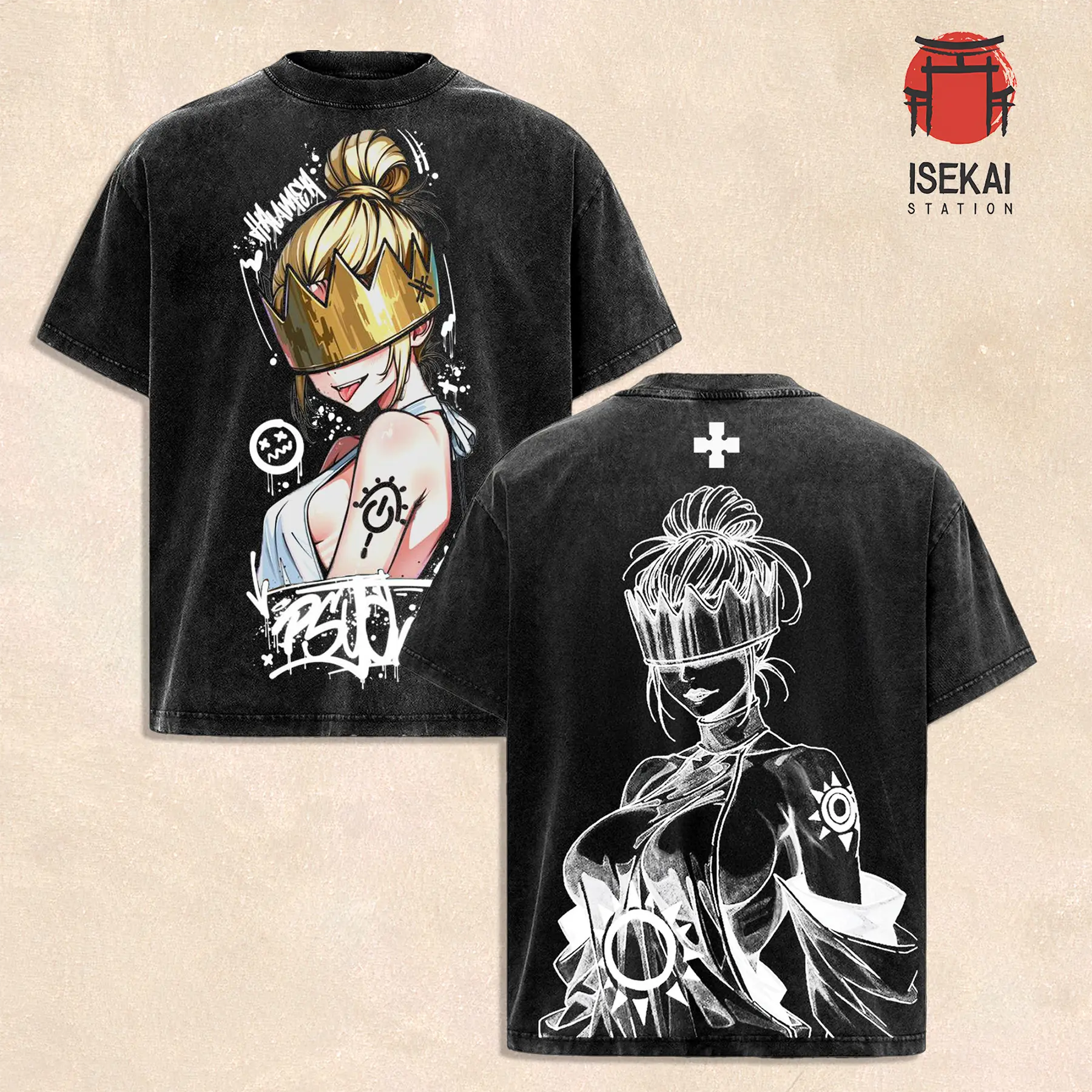5. Haumea Fire Force Anime Double Printed Vintage Washed Tee Unisex Oversize Heavyweight Cotton T-shirt for Anime Fans and Lovers