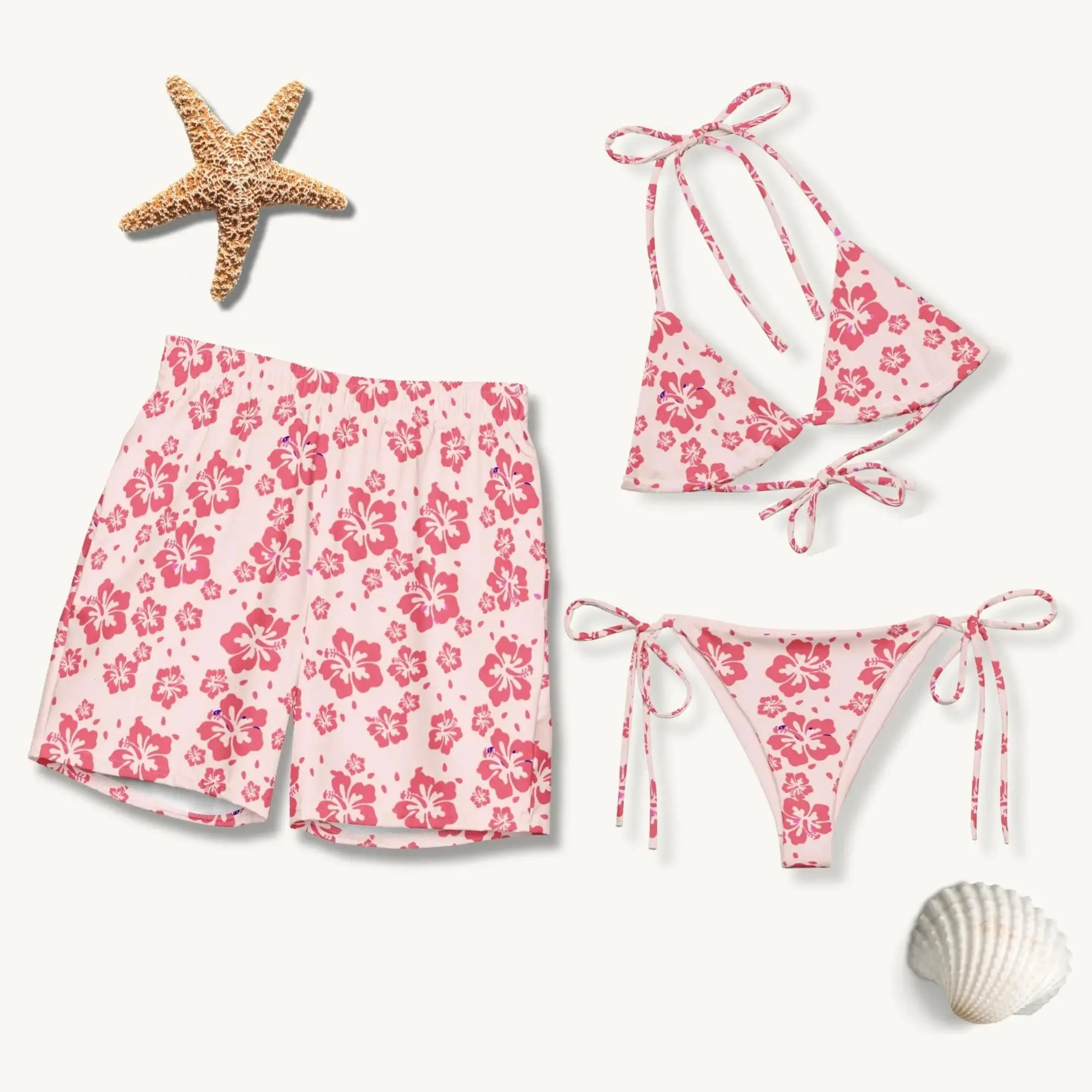Matching Couple Swimwear Set – Bikini & Mesh Shorts