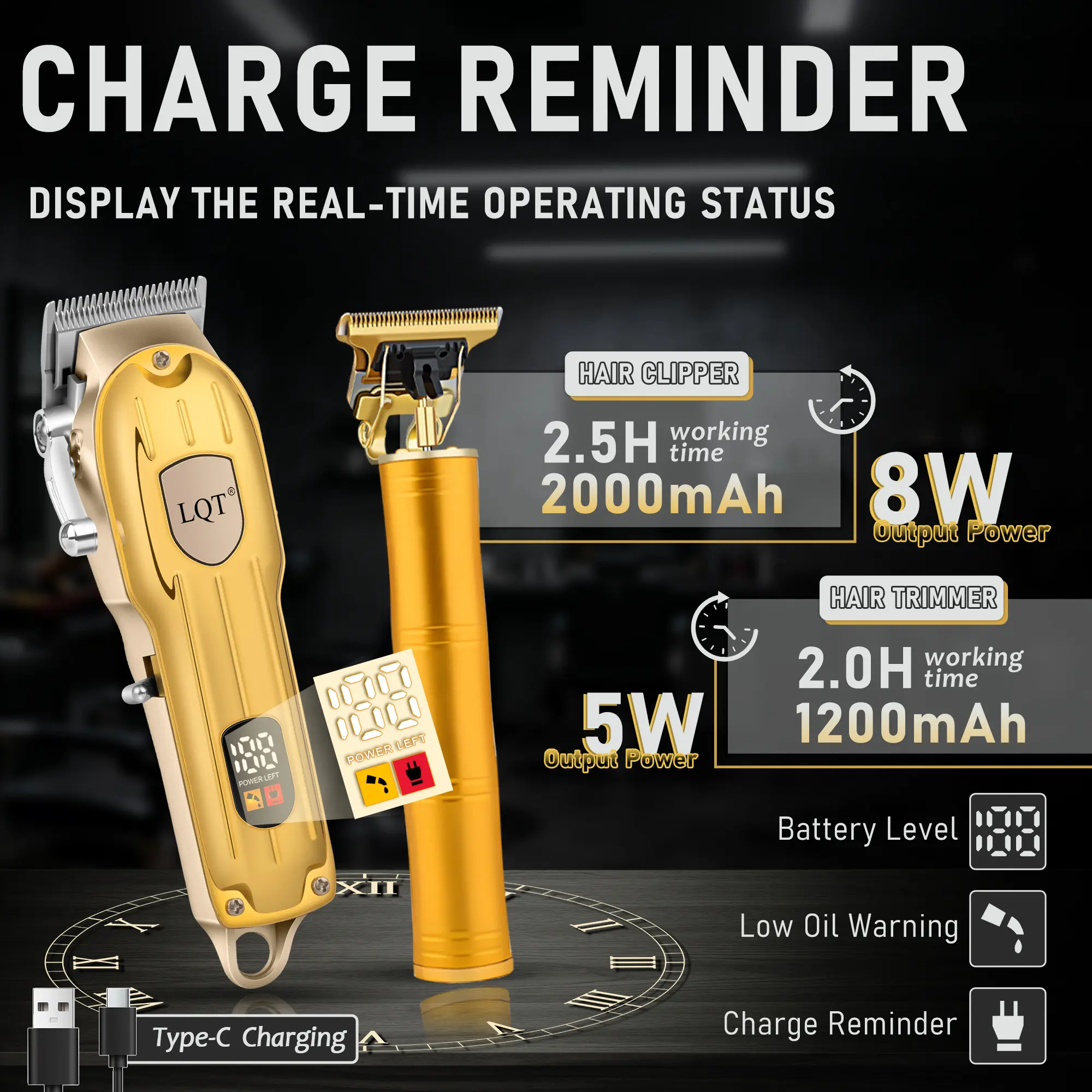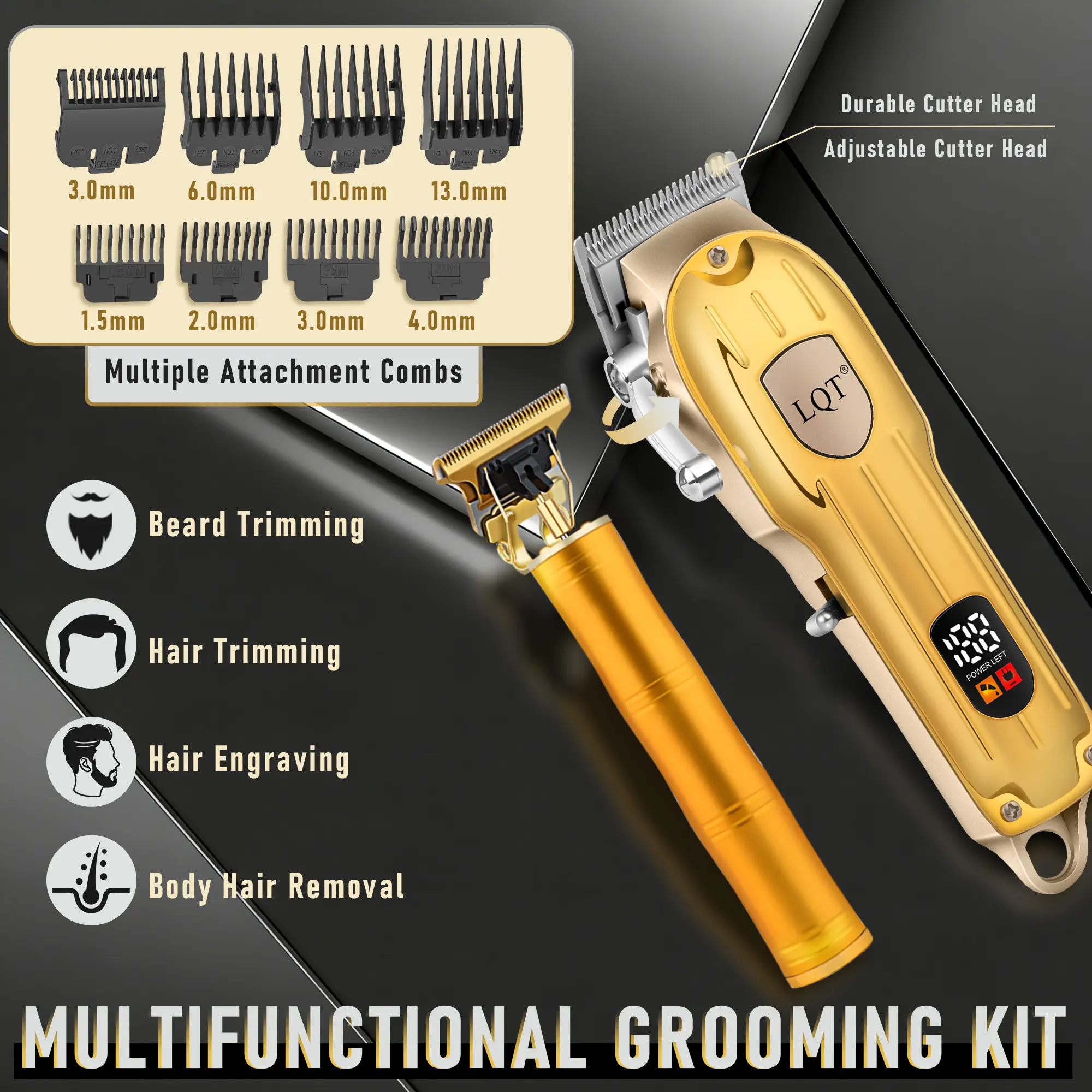LQT All-In-One Gold Men's Hair Cutting & Grooming Set, Cordless Rechargeable Hair Clipper, Precision Trimmer & Shaver with Smart LCD Screen, Complete Home Barber Kit with All Accessories, Save Money on Barbers for All Ages & Daily Grooming Needs