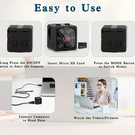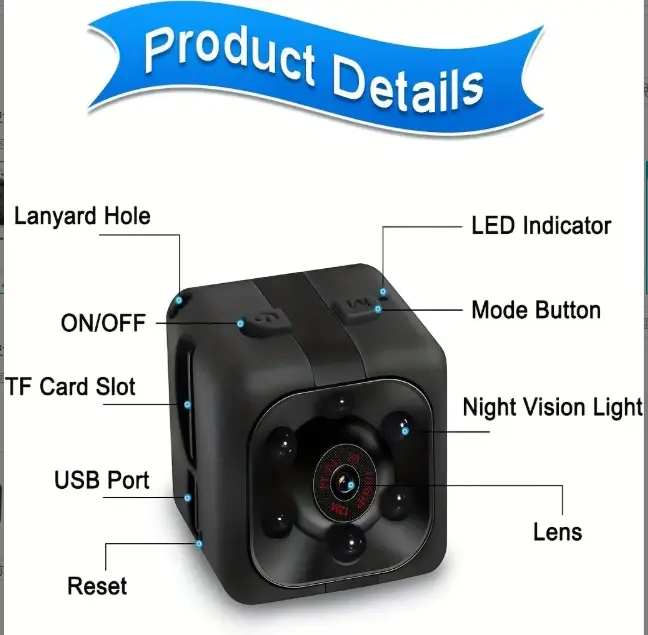 1080P HD Camera With Audio And Video Recording, Night Vision, Motion Detective - No Wi-Fi Need