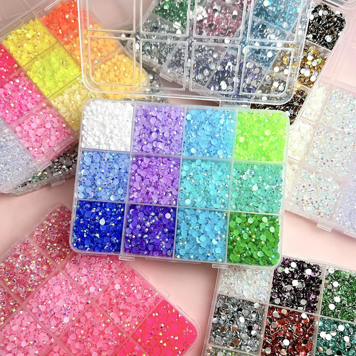 1Set 108 Colors Hot Selling Mini AB Nail Rhinestone Bedazzling Kit 3mm Flatback Semi-circular Resin Nail Diamond Jewelry DIY Phone Case Glasses Cup Nail Art