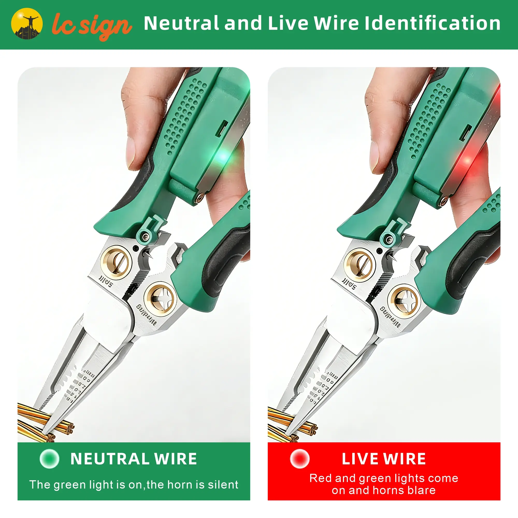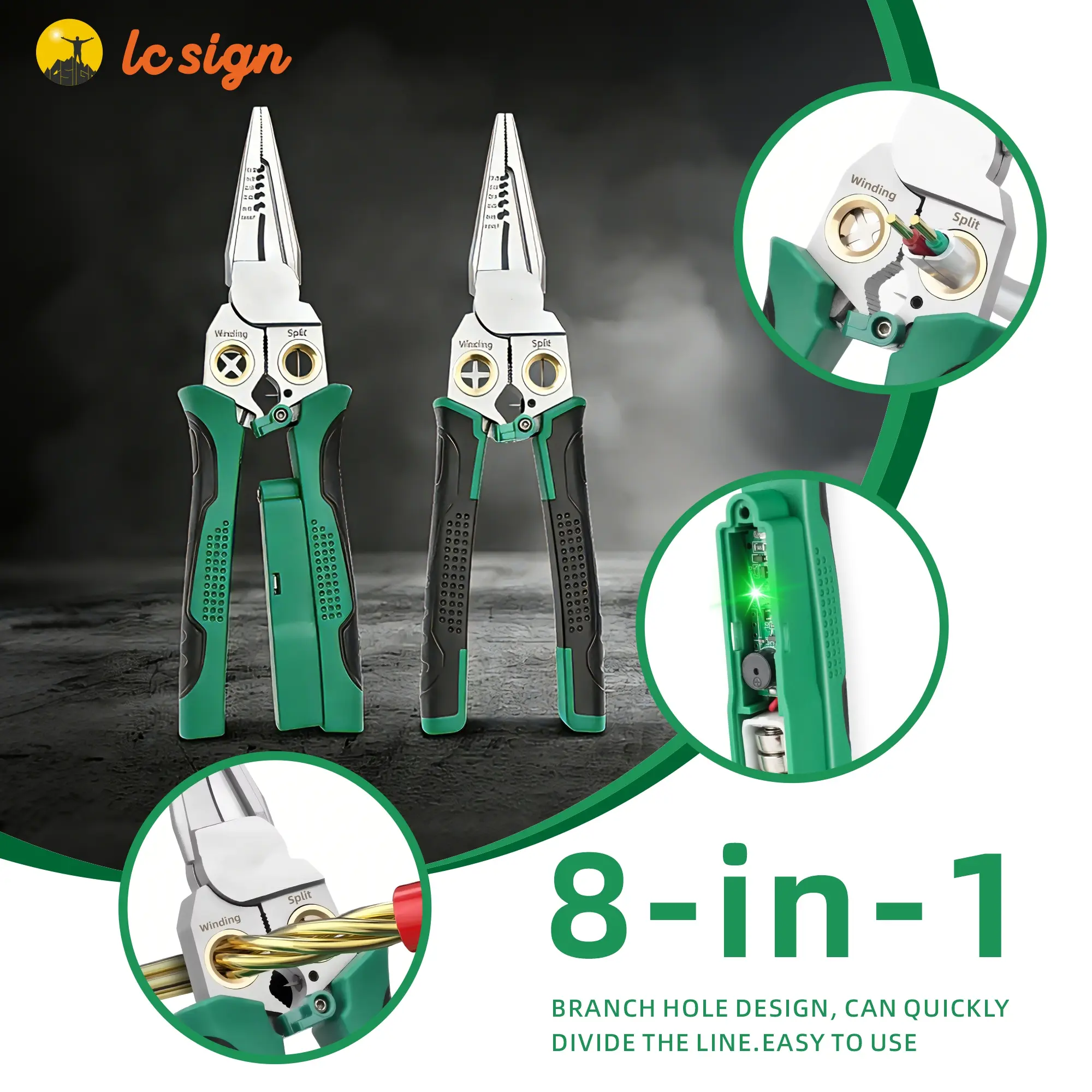 This LC SIGN 8-in-1 multifunctional wire stripper integrates clamping, wire cutting, wire pressing, cable stripping, wire twisting, wire splitting, wire pulling and voltage testing. It replaces 8 separate tools to streamline your toolbox and maximize work efficiency.