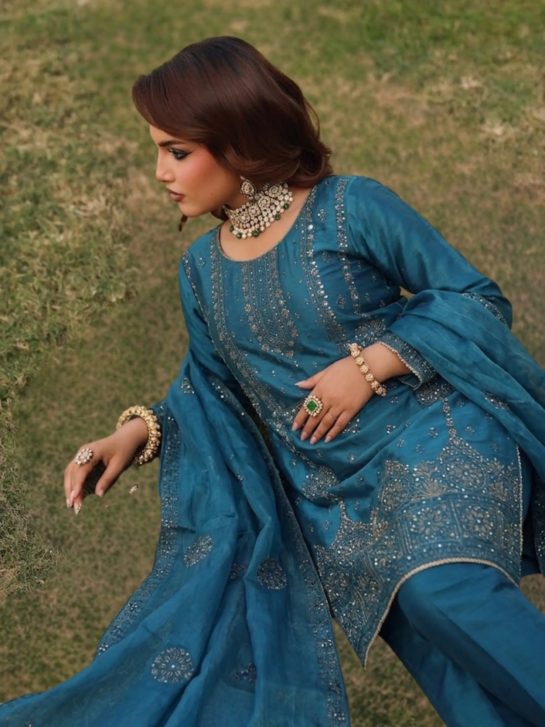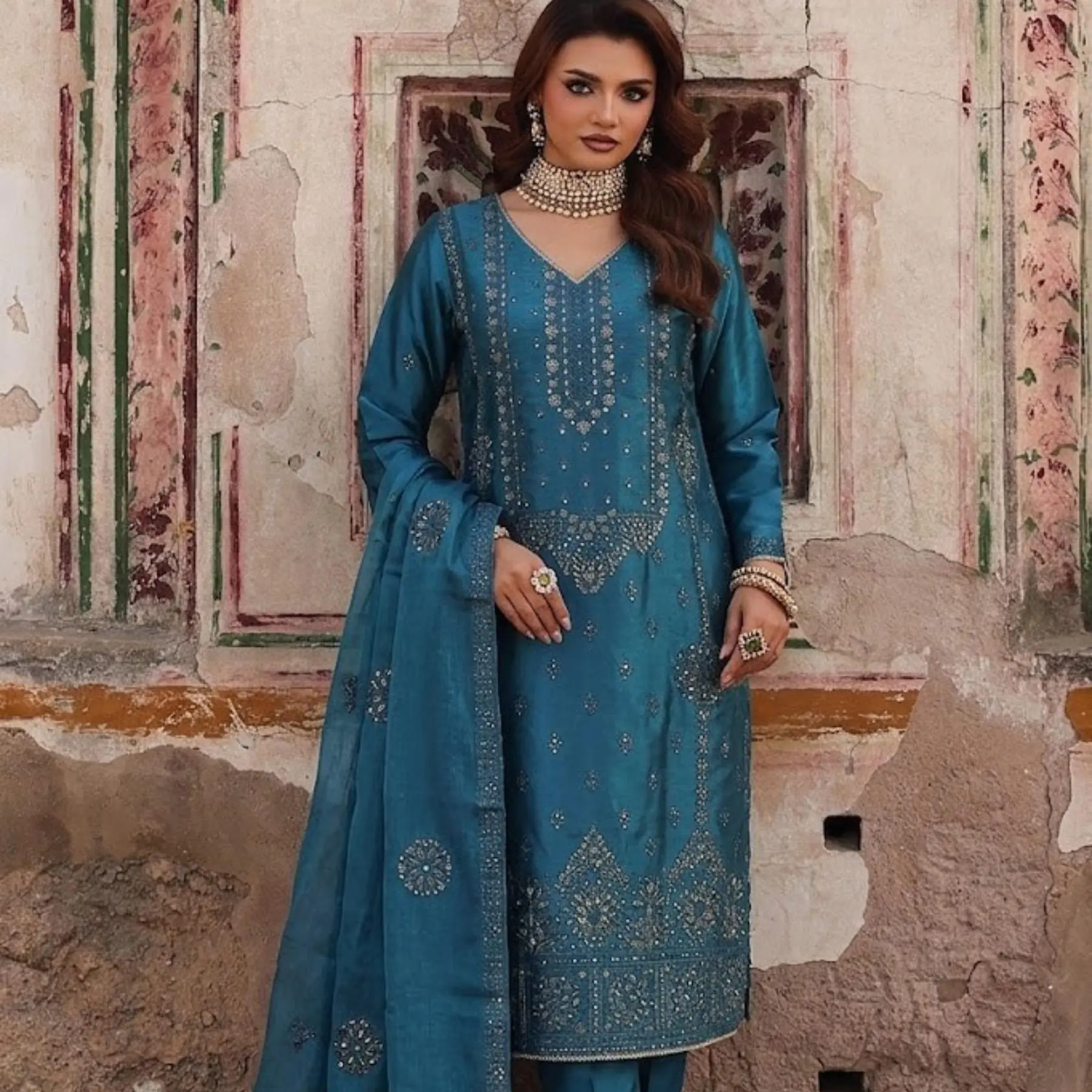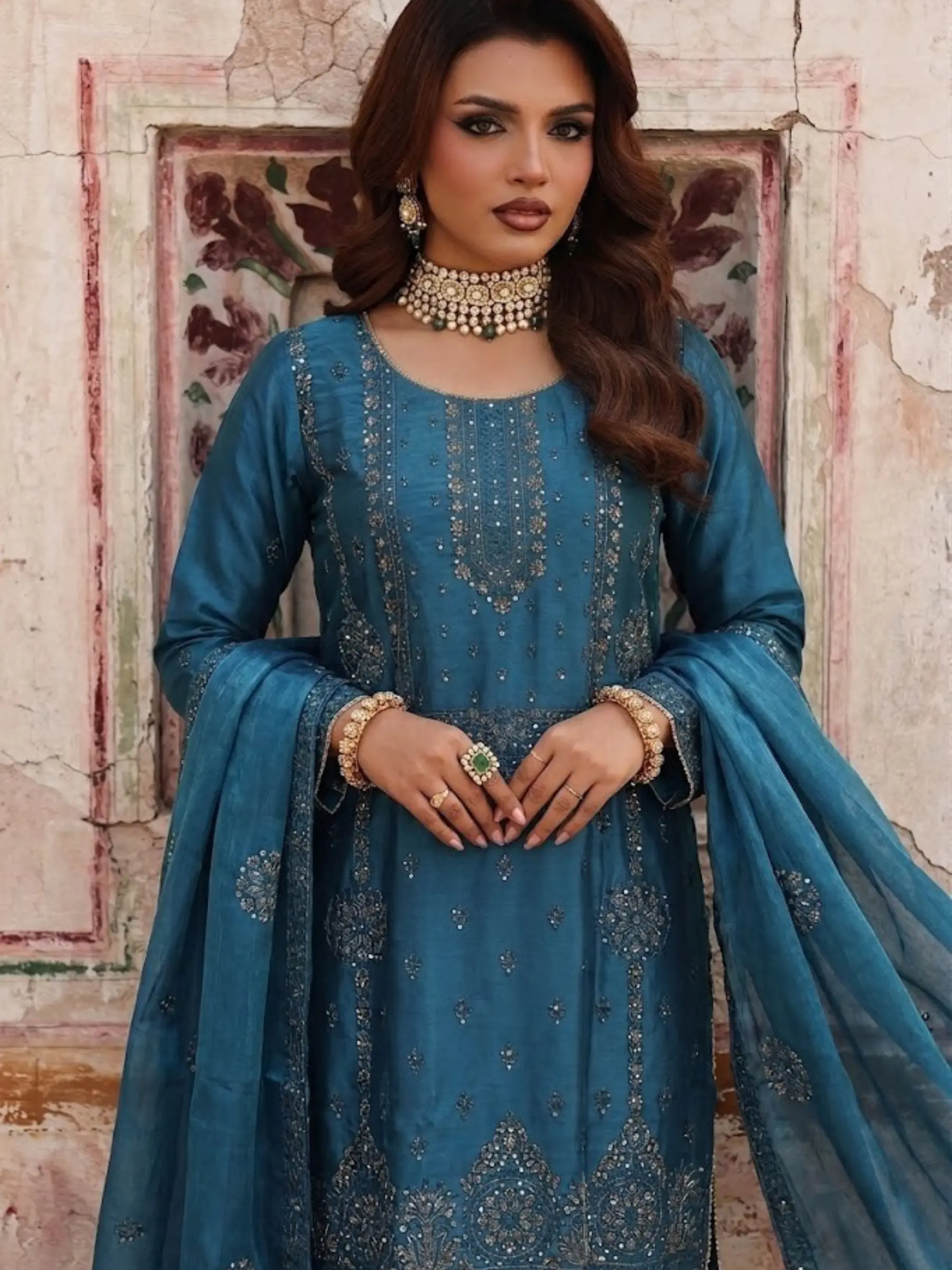 Upgrade your wardrobe with this luxurious 3-piece embroidered suit, designed for elegance and comfort. The sheesha silk fabric shirt and trouser feature delicate embroidery that adds a refined traditional look, while the plain organza dupatta with subtle gold tone completes the outfit with graceful sophistication. Perfect for Eid, weddings, festive gatherings, dinners, and formal events, this outfit blends modern style with classic ethnic elegance. The lightweight fabric keeps you comfortable while looking effortlessly stylish. Includes: • Embroidered Shirt • Matching Trouser • Plain Chiffon Gold Dupatta Features: • Premium silky soft fabric • Elegant embroidery on shirt & trouser • Lightweight chiffon dupatta • Comfortable & breathable • Perfect for festive and formal wear Style it with heels and statement earrings for a complete elegant look.