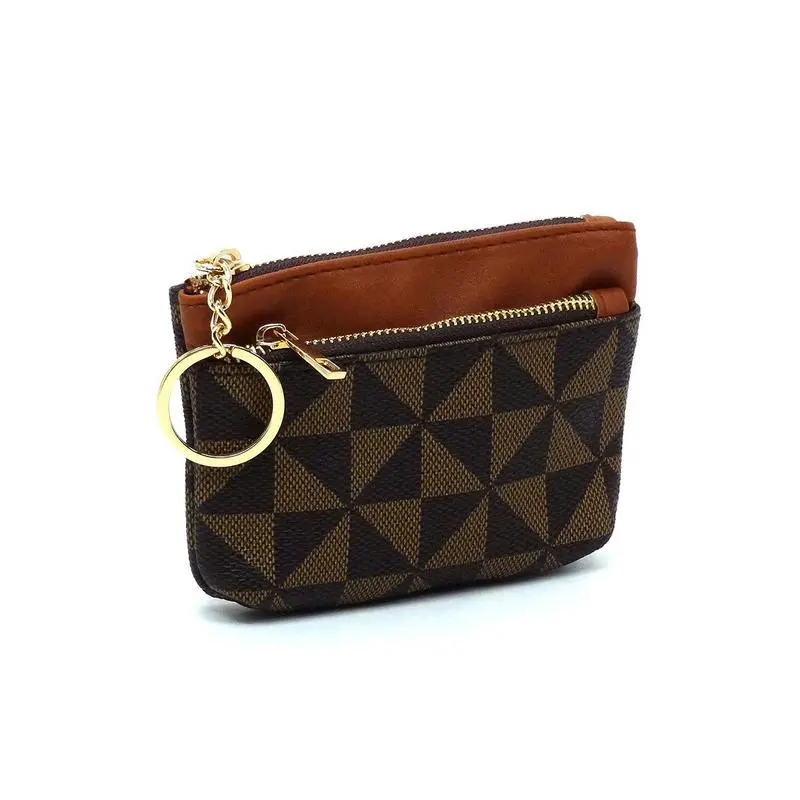 PM Monogram Keychain Coin Purse Faux vegan leather Zip top closure Gold-tone hardware L 5 * H 3.5 * W 0.5