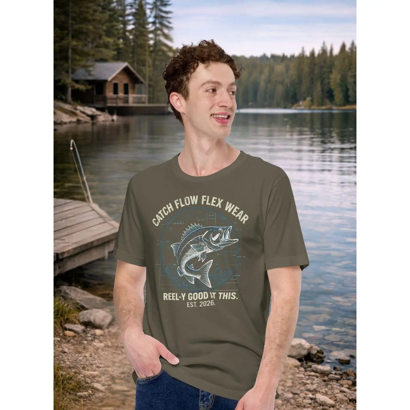 Are you reel-y into fishing? Then you need this Catch Flow Flex Wear Reel-y T-Shirt! It's the perfect way to show your love for fishing while keeping things light and fun. Because let's be honest—fishing is reel-y serious business, but that doesn't mean you can't have a laugh!