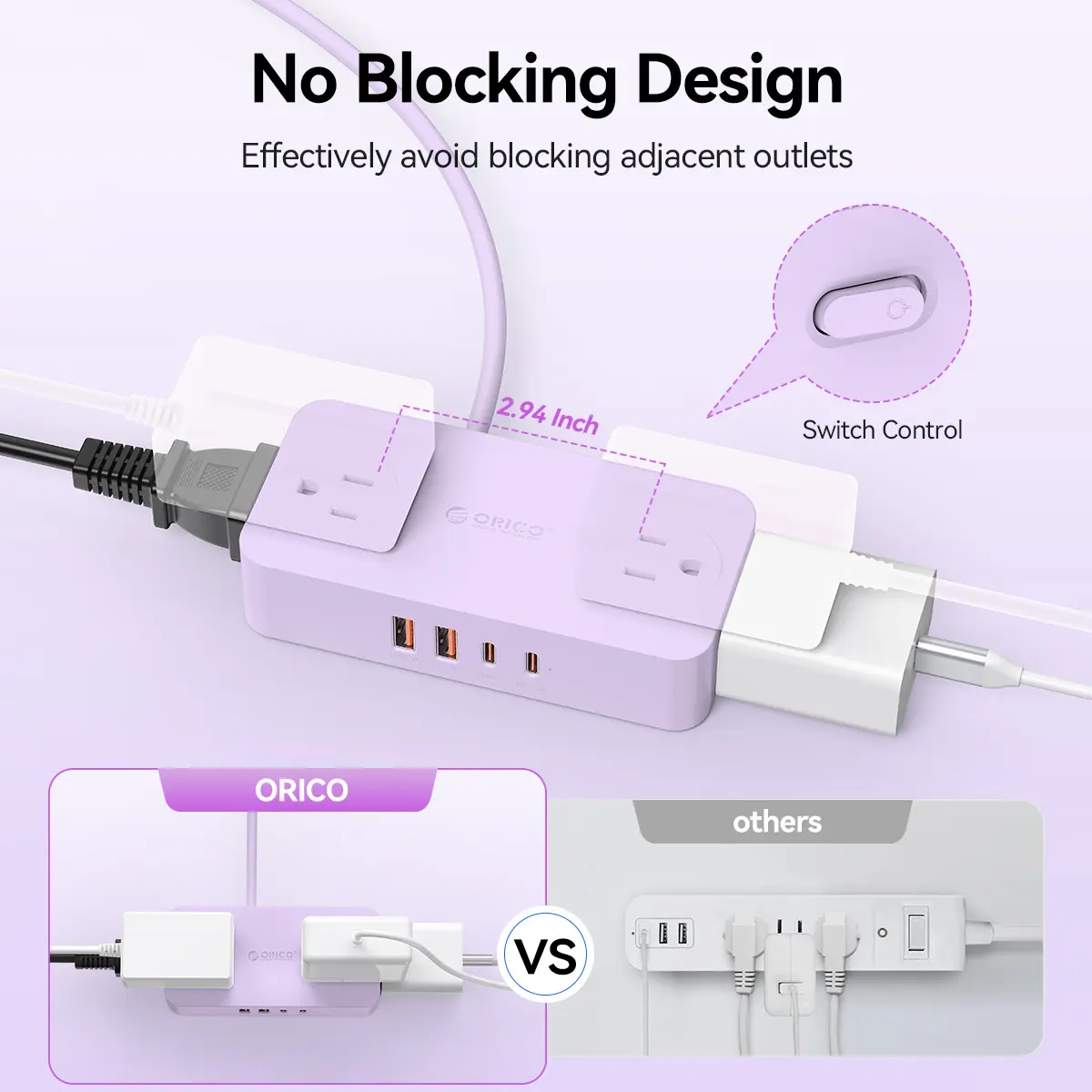The outlet extension with 2.94 Inch widely space daccommodates large adapters without blocking each other. Its compact design saves space and keeps desks tidy, perfect for home, office, or dorms