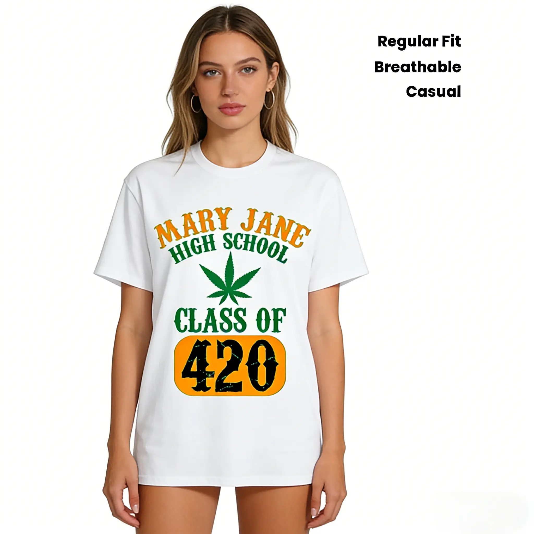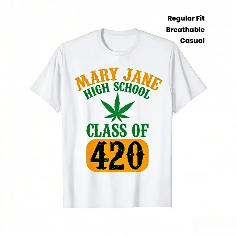 Class of 420 Weed Graphic T-Shirt, Fabric, Crew Neck, Short Sleeve, Regular Fit, Weekend Casual Wear, All-Season Casual Wear