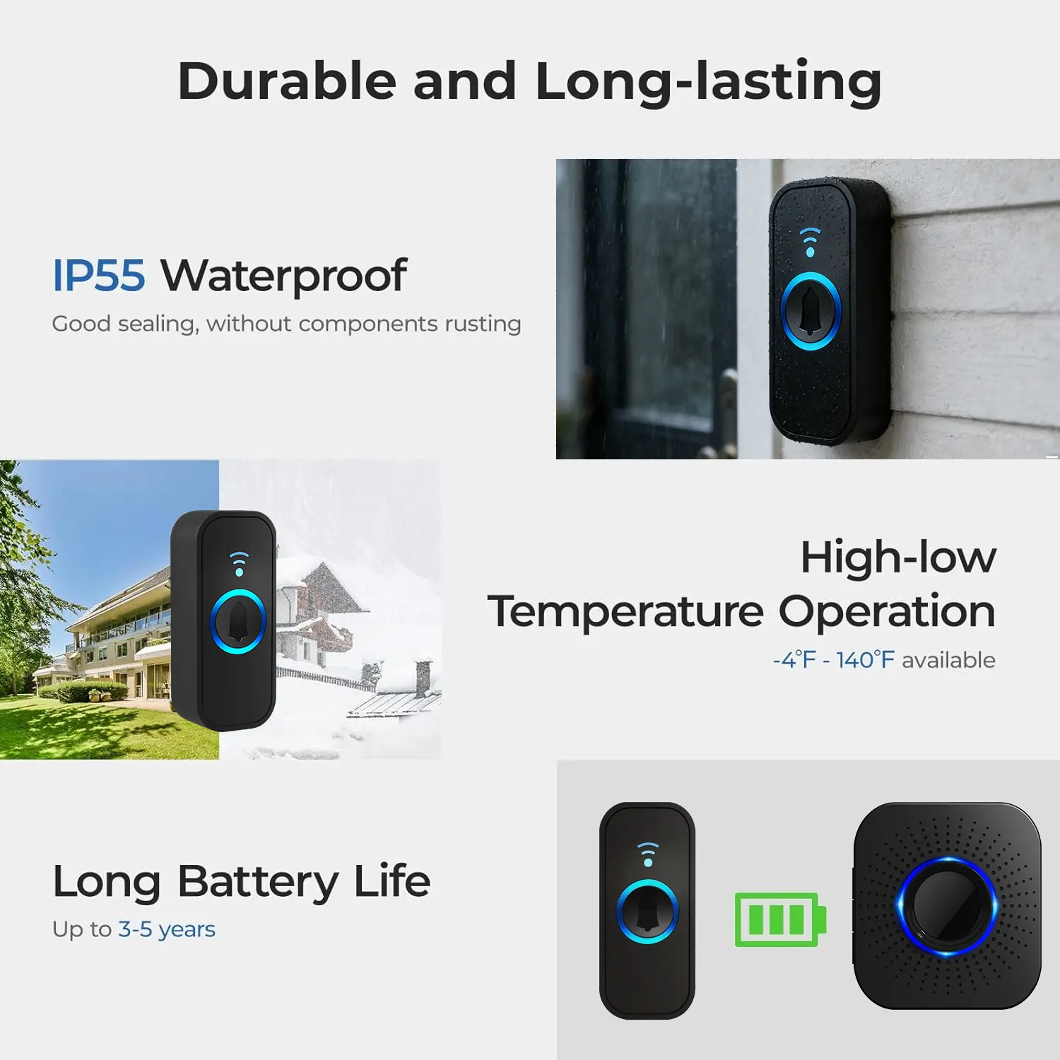 ·【High-quality Protection】Stable operation from -4 °F to 140 °F, heavy rain, snow and sunshine, replaceable CR2032 coin cell battery with 3 years of long life (5 measurements per day), and IP55 waterproof button can withstand the wind and rain. Dual EU CE/US FCC certifications for safety and security every time.