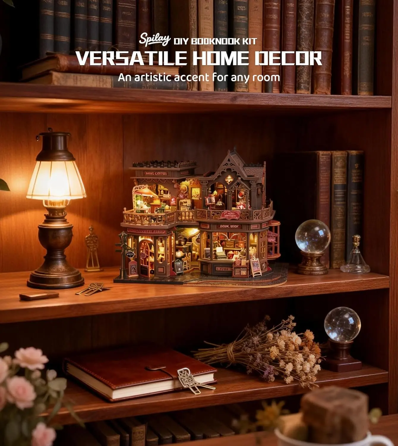 ·***Easy Assembly with Spilay Support Guarantee: Your crafting success is our priority! This mini house building kit includes a clear, step-by-step colorful instruction,music box and LED light. We offer reliable 24-month support for any missing or damaged parts. Confidently embark on your retro book repository—we're here to ensure a smooth and enjoyable experience from start to finish.