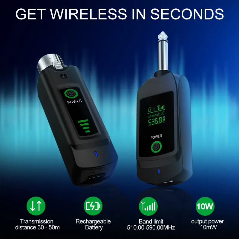Experience reliable audio with the kaschun audio UHF system. It operates in the 510.00-590.00MHz band, offering 10mW output power. Enjoy 30-50m anti-interference transmission with no signal drop. Perfect for performances, this system ensures seamless audio delivery.