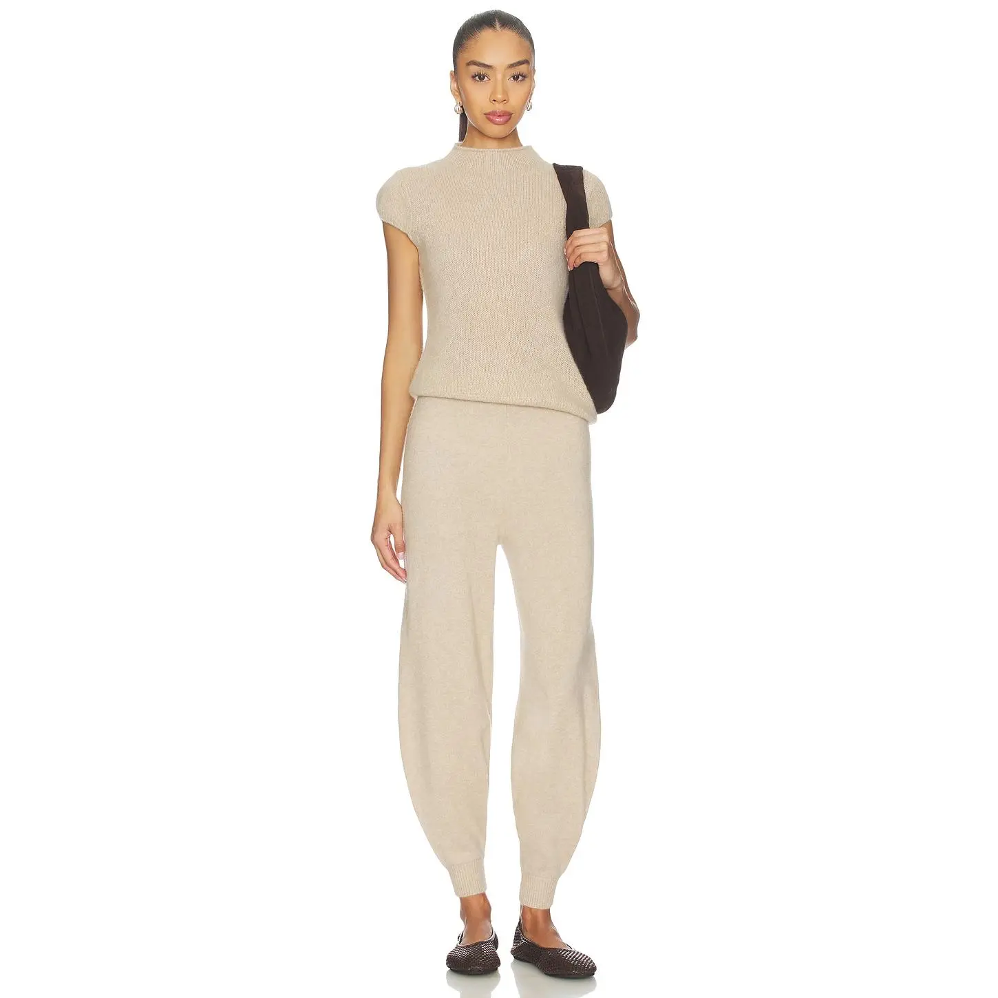 5. W. Cashmere Brigitte Mock Neck Short Sleeve in Jute