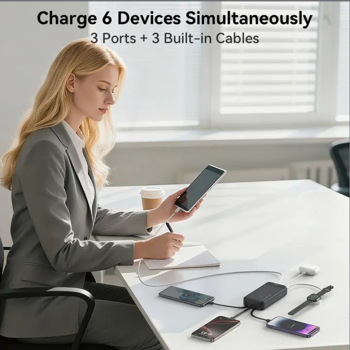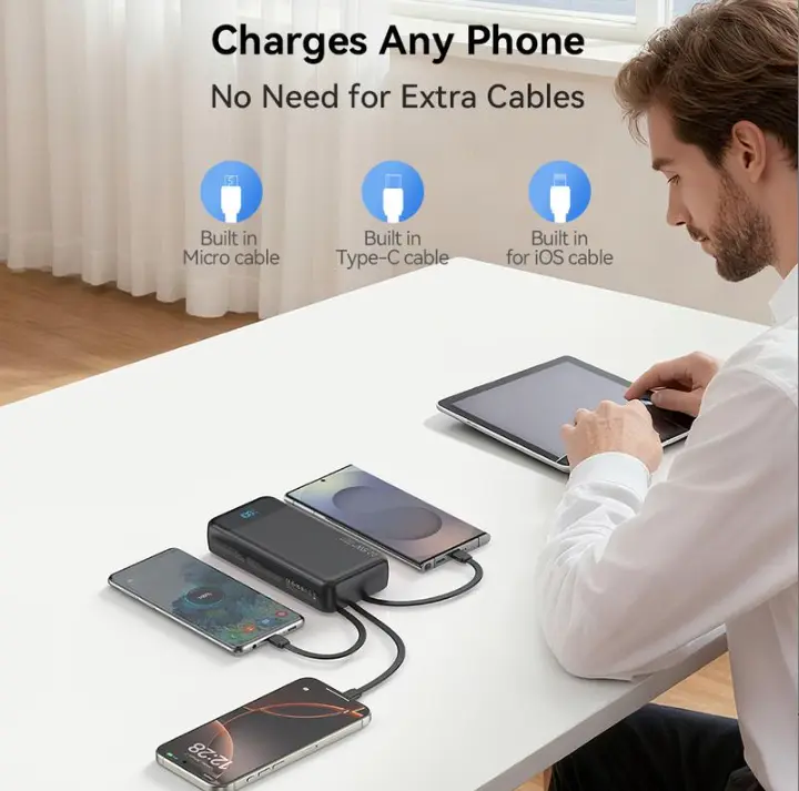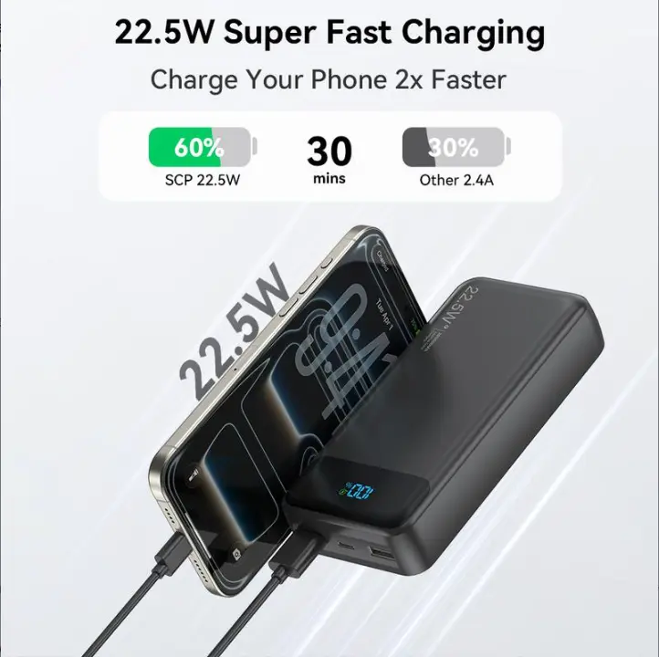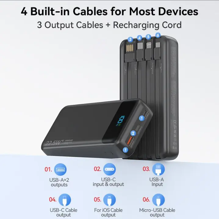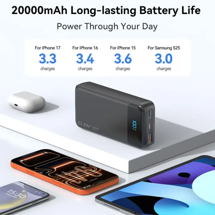 2026 Model 20,000mAh Portable High-Capacity Power Bank: Supports PD 20W fast charging; features a USB-C port, 6 output ports, and 2 input ports; equipped with an LED digital display and compatible with a wide range of smart devices.