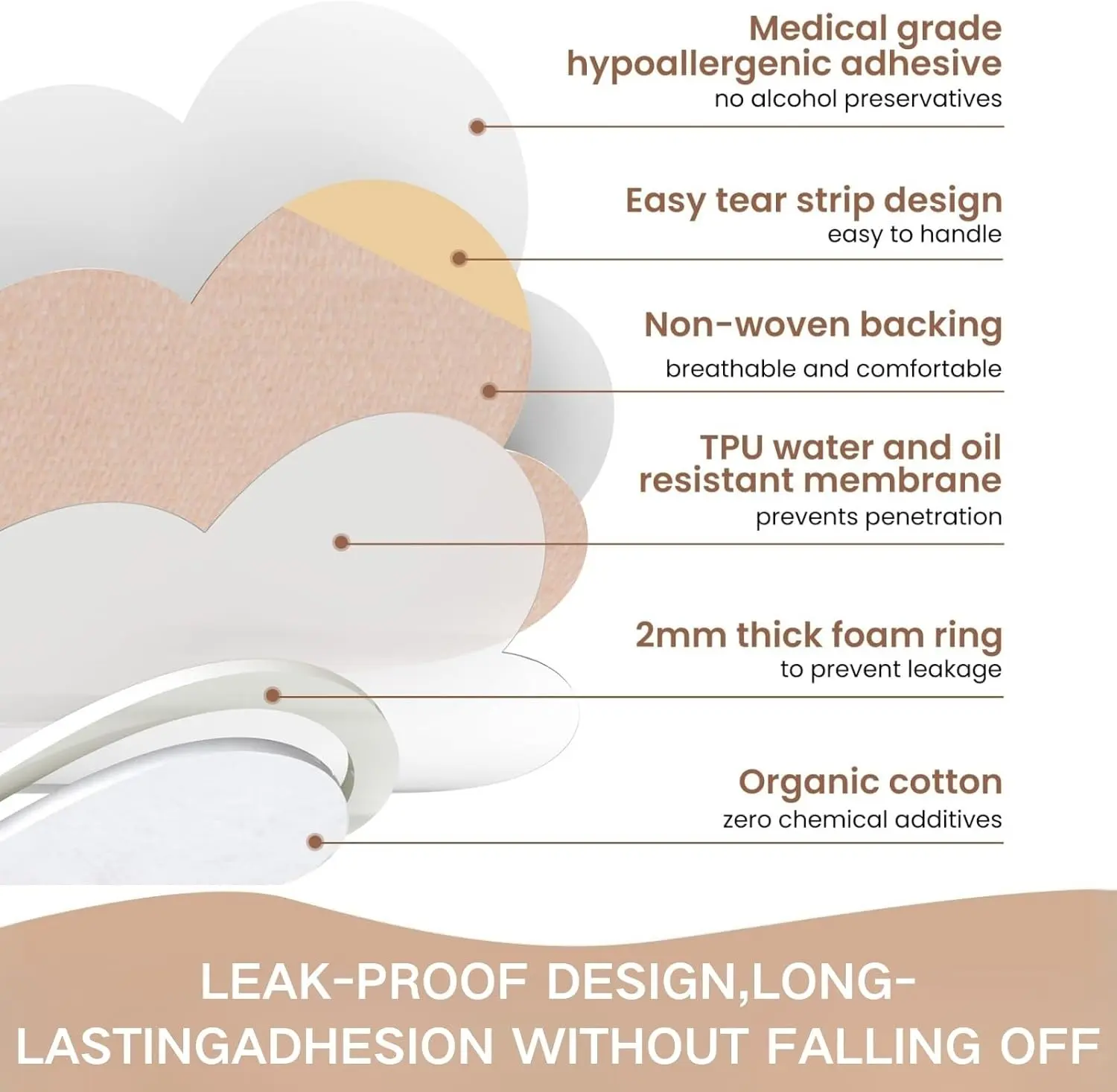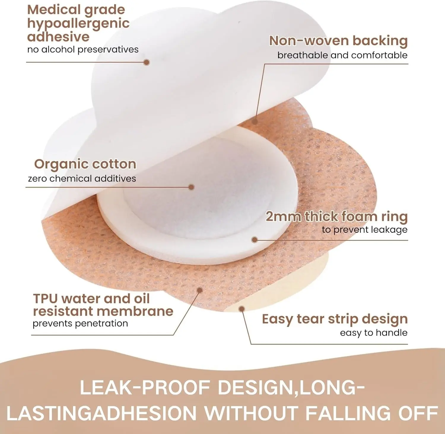 Anti Leakage Hygienic Design: The patch features a carefully designed leak-proof border structure combined with a high-quality organic cotton pad that is 2mm thick at the center.This unique design effectively locks in liquids absorbed by the cotton pad (such as castor oil), significantly reducing the risk of leakage and ensuring the application area and surrounding clothing remain clean and tidy.Say goodbye to traditional oily care methods (such as direct pouring or cotton ball wrappi