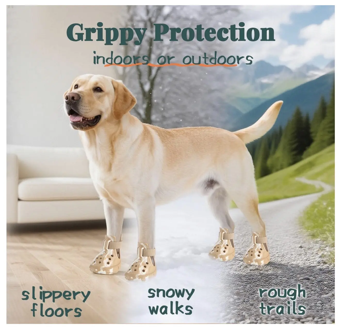 Secure Anti-Slip & Lightweight: Dog booties boost your dog's confidence outdoors! The rugged anti-slip sole delivers superior stability and traction on wet grass, park paths, and sandy beaches. The lightweight design ensures natural movement without weighing them down – run, play, explore freely