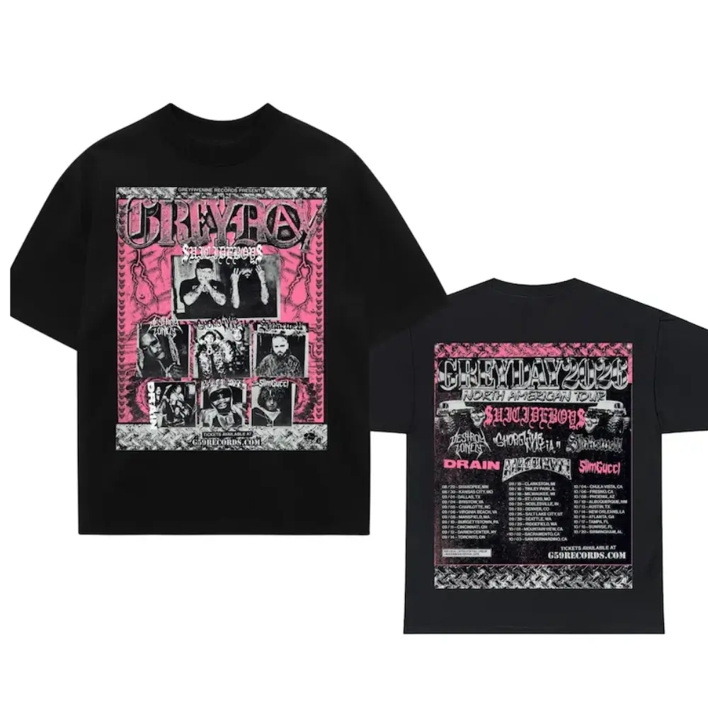Grey Day 2026 Tour Graphic T-Shirt, Rap Concert Streetwear Aesthetic Tee Vintage Hip Hop Fan Style, Unisex Outfit for Men Women, Soft Washed Cotton Shirt Casual Tour Wear