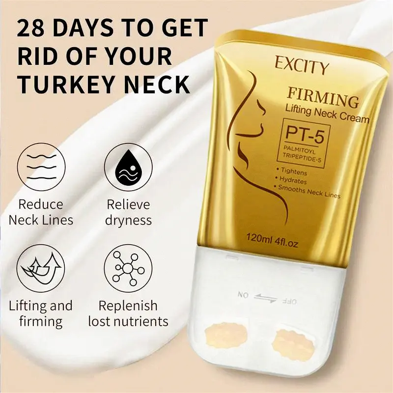 Stop letting your neck reveal your age! Whether it’s from scrolling on your phone or natural aging, those deep neck lines meet their match with the EXCITY PT-5 Firming & Lifting Neck Cream.