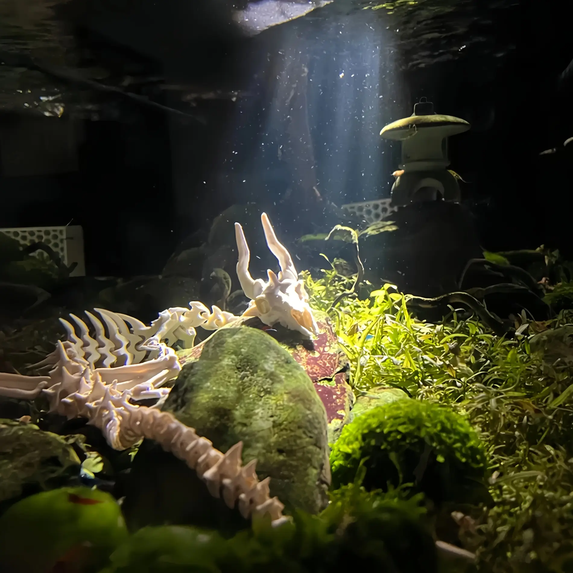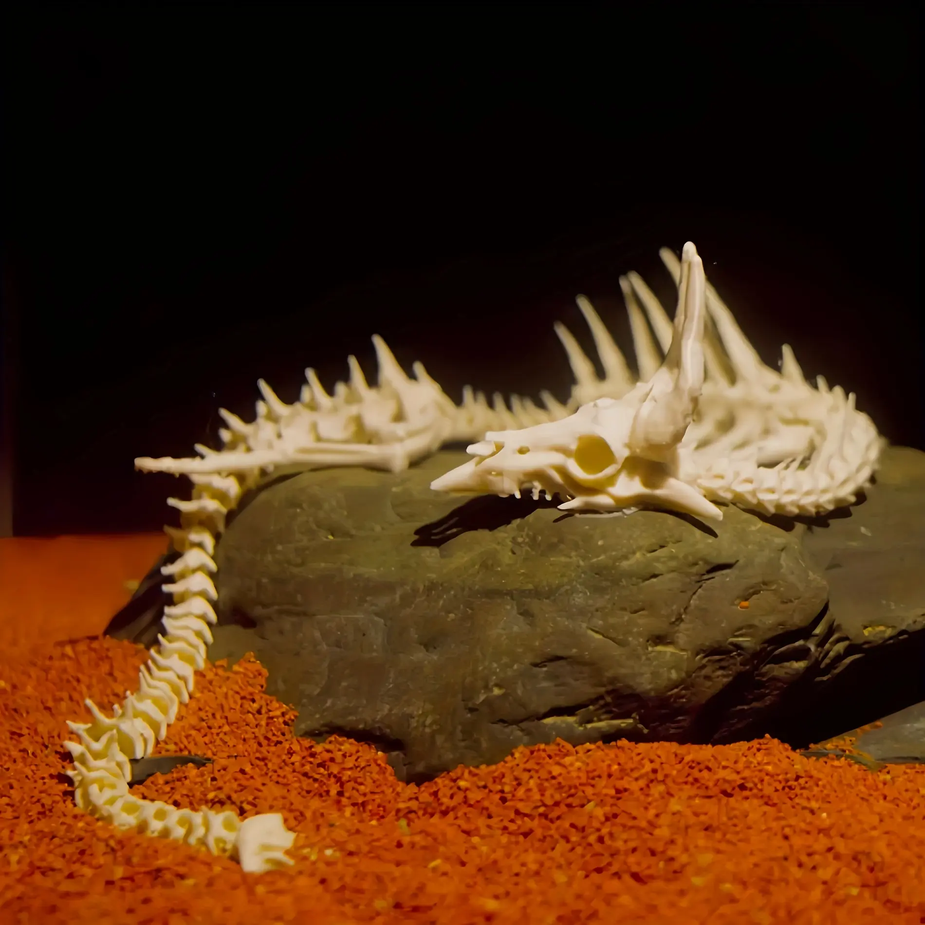 Dragon Skeleton Statue with Movable Joints - Black and White Plastic Sculpture, Suitable for Indoor/Outdoor Decoration, Aquarium Scenes, Halloween, Christmas, Thanksgiving - No Electricity Required, Halloween Decoration, Detailed Craftsmanship