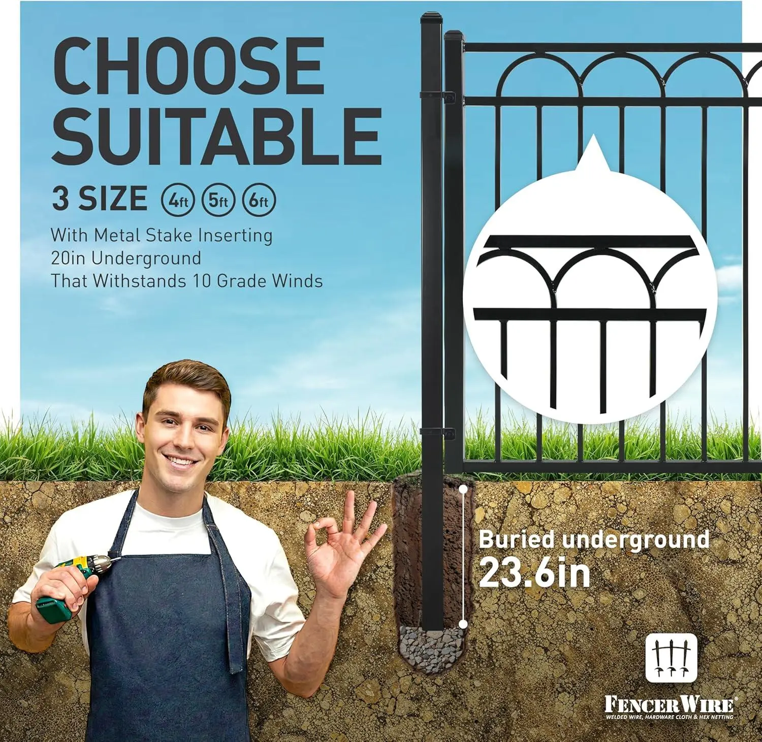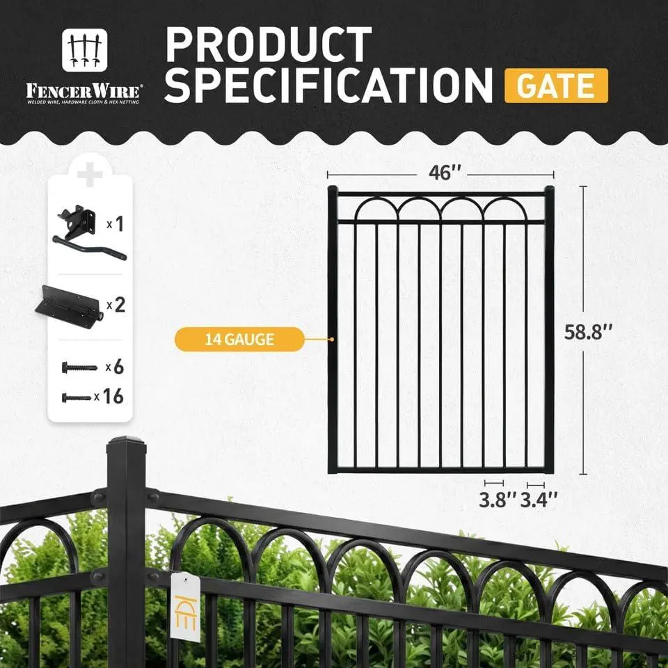 Fencer Wire Heavy Duty Arc Fence Gate, 5FT Height x 4FT Width Outdoor Fence Gate, Outdoor Anti-Rust Metal Steel Gate for Fencing Barrier, Decorative Garden Gate for Residential, Yard, Pool, Patio