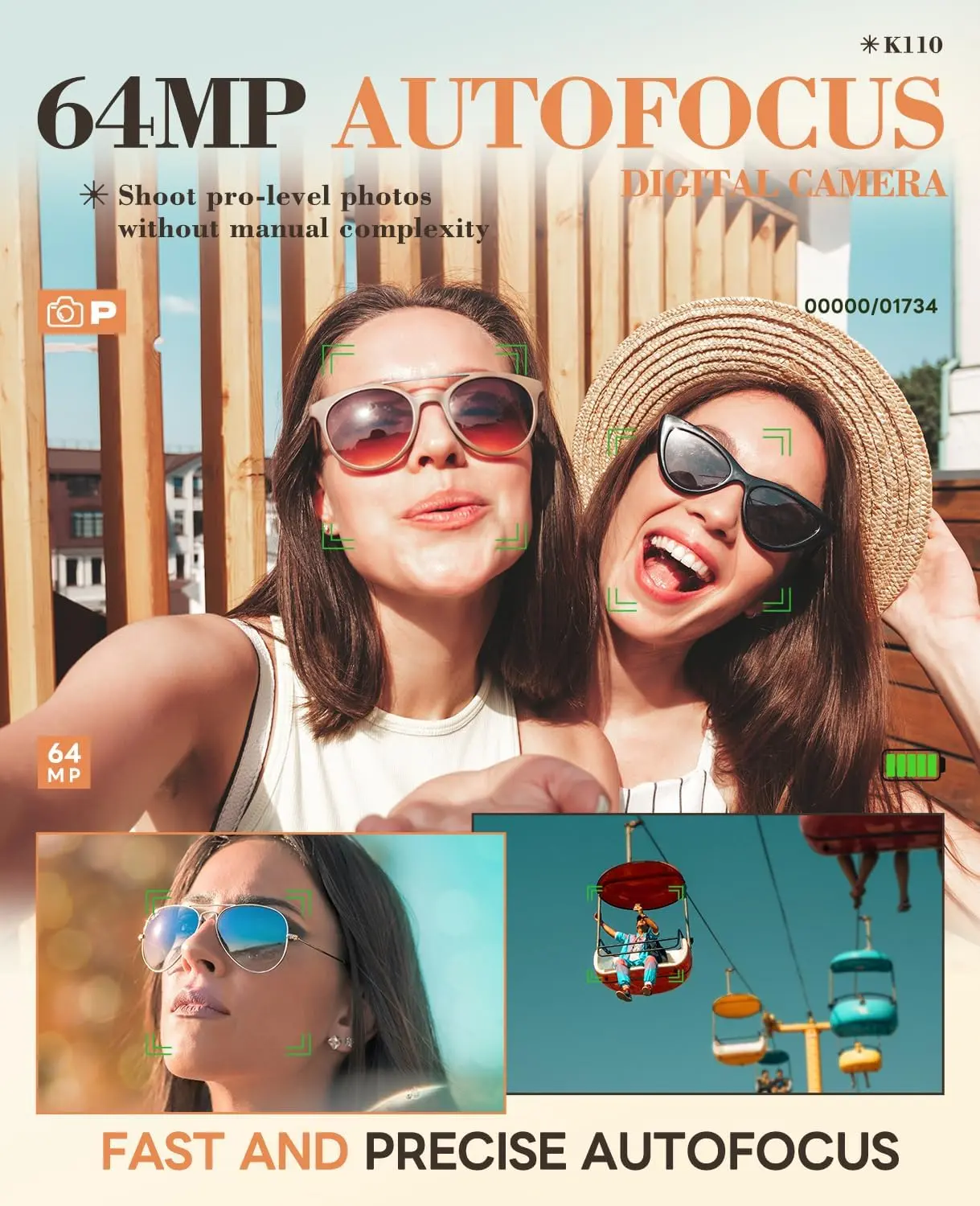 ·【180° Flip Screen for Selfies】Perfect selfies have never been easier! The 180° flip screen ensures you can confidently find the best angle. Whether you’re documenting your urban adventures or snapping group photos at a beach party, you’ll always look your best.