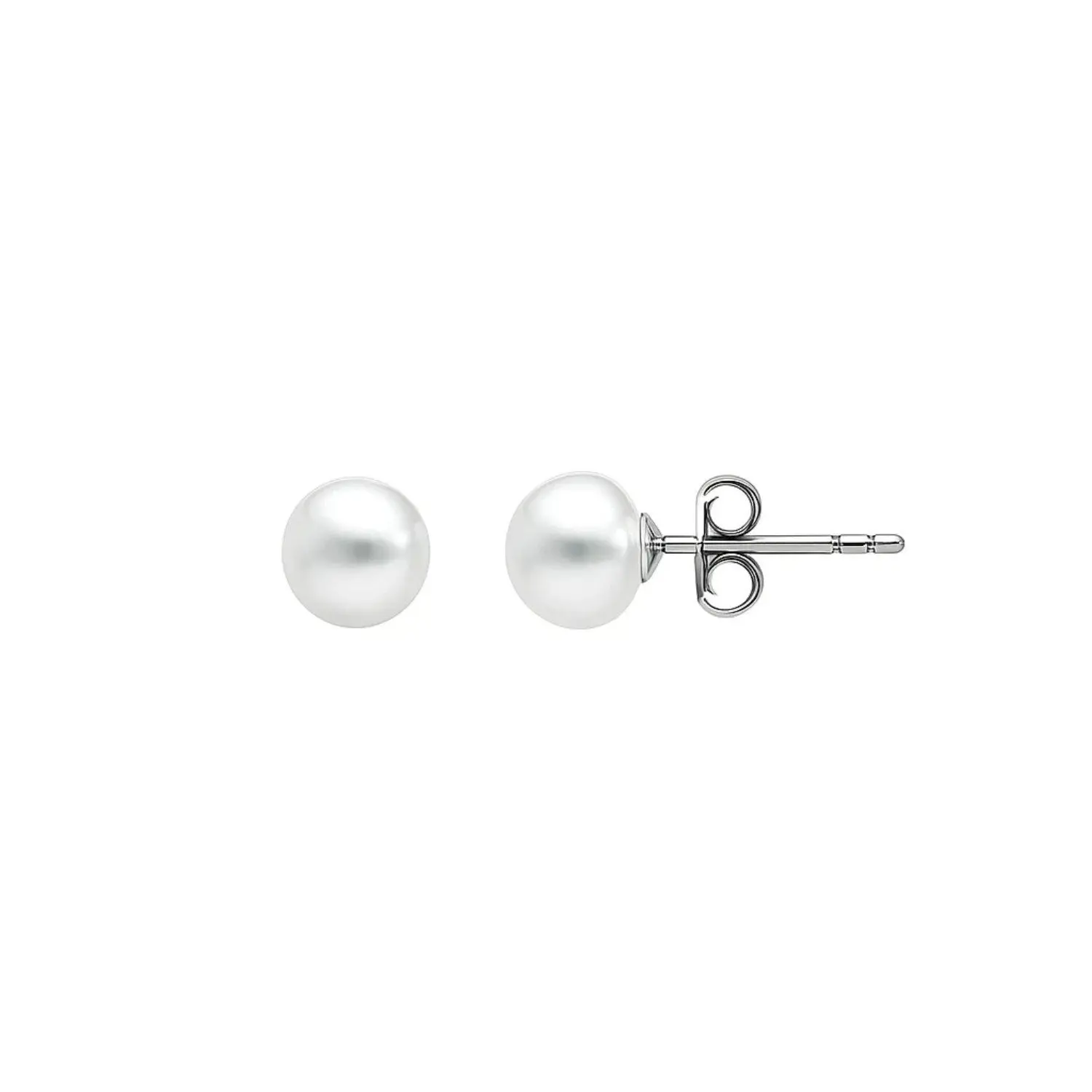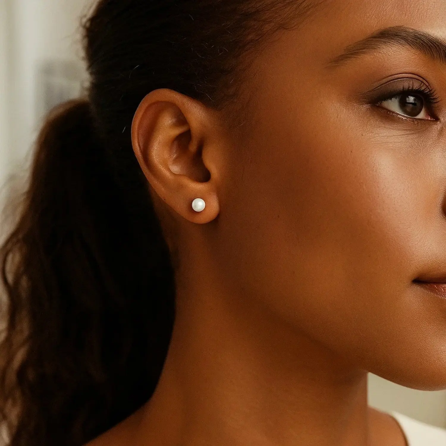 These 4mm freshwater cultured white pearl stud earrings in solid 14k white gold are the most delicate expression of a timeless classic. The petite pearl sits quietly on the earlobe — a whisper of luster that's refined, understated, and endlessly elegant.
