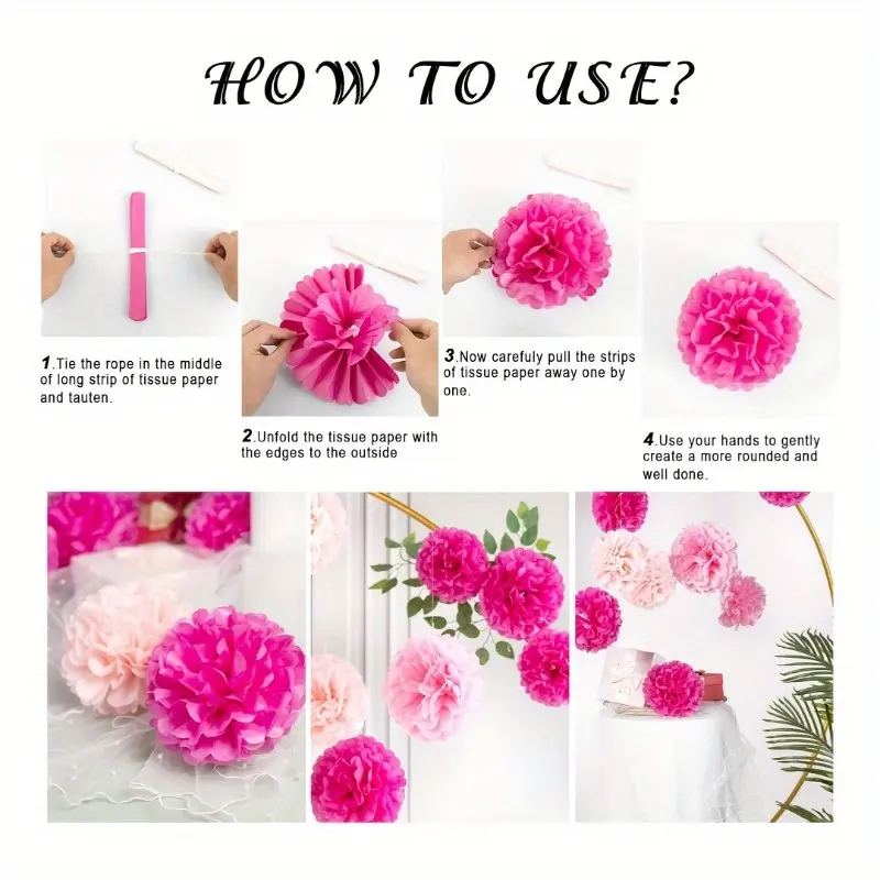Pink Decor 30pcs Set of Sweet Handmade Paper Flower Balls – Hanging Decorations in Various Sizes, Perfect for Engagement Weddings, Birthday Parties, and Home Outdoor Decoration, Pink Series
