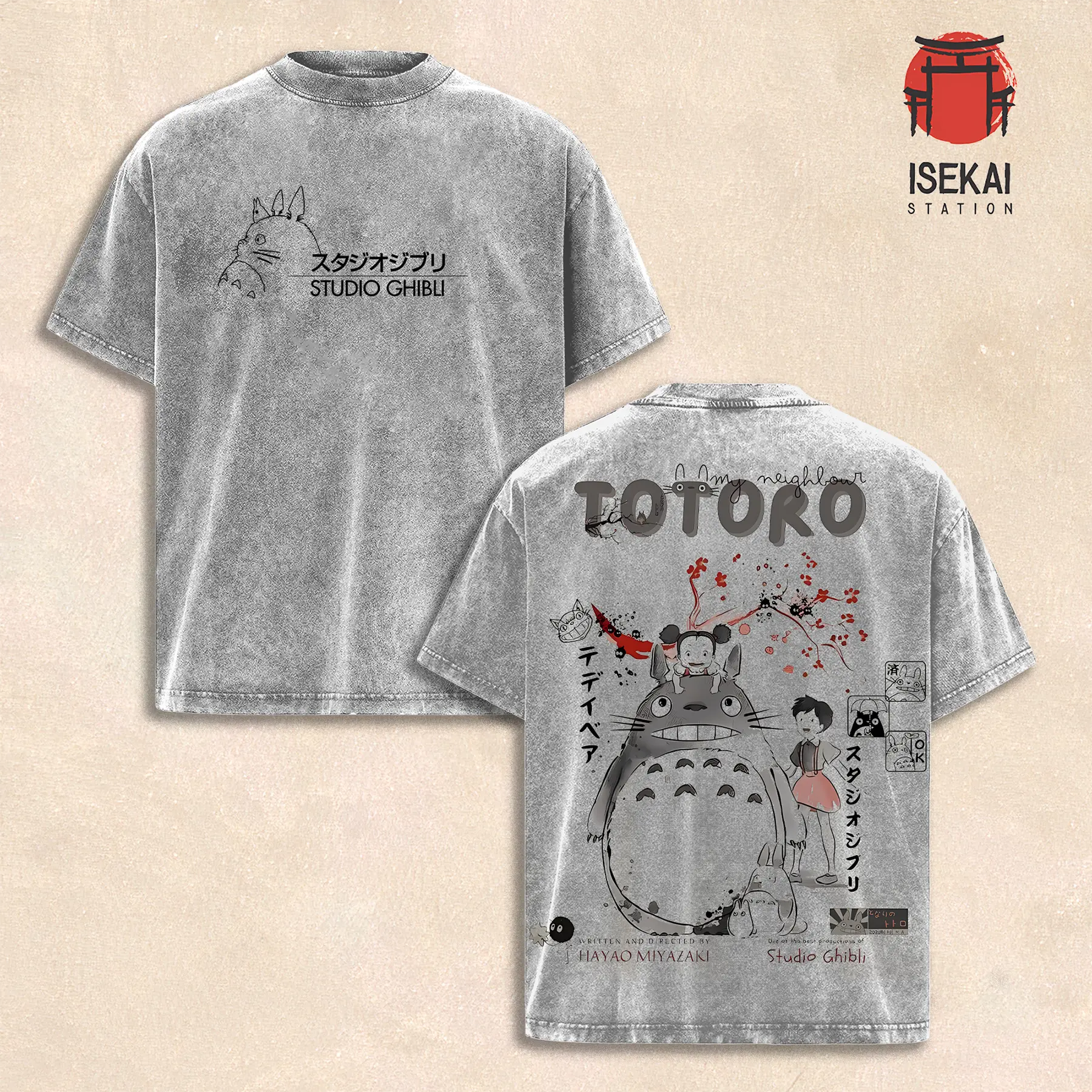 My Neighbor Totoro - Studio Ghibli Anime Double Printed Vintage Washed Tee Unisex Oversize Anime Manga Washed Heavyweight Cotton T-shirt, Gift For Anime Fan, Anime Lover