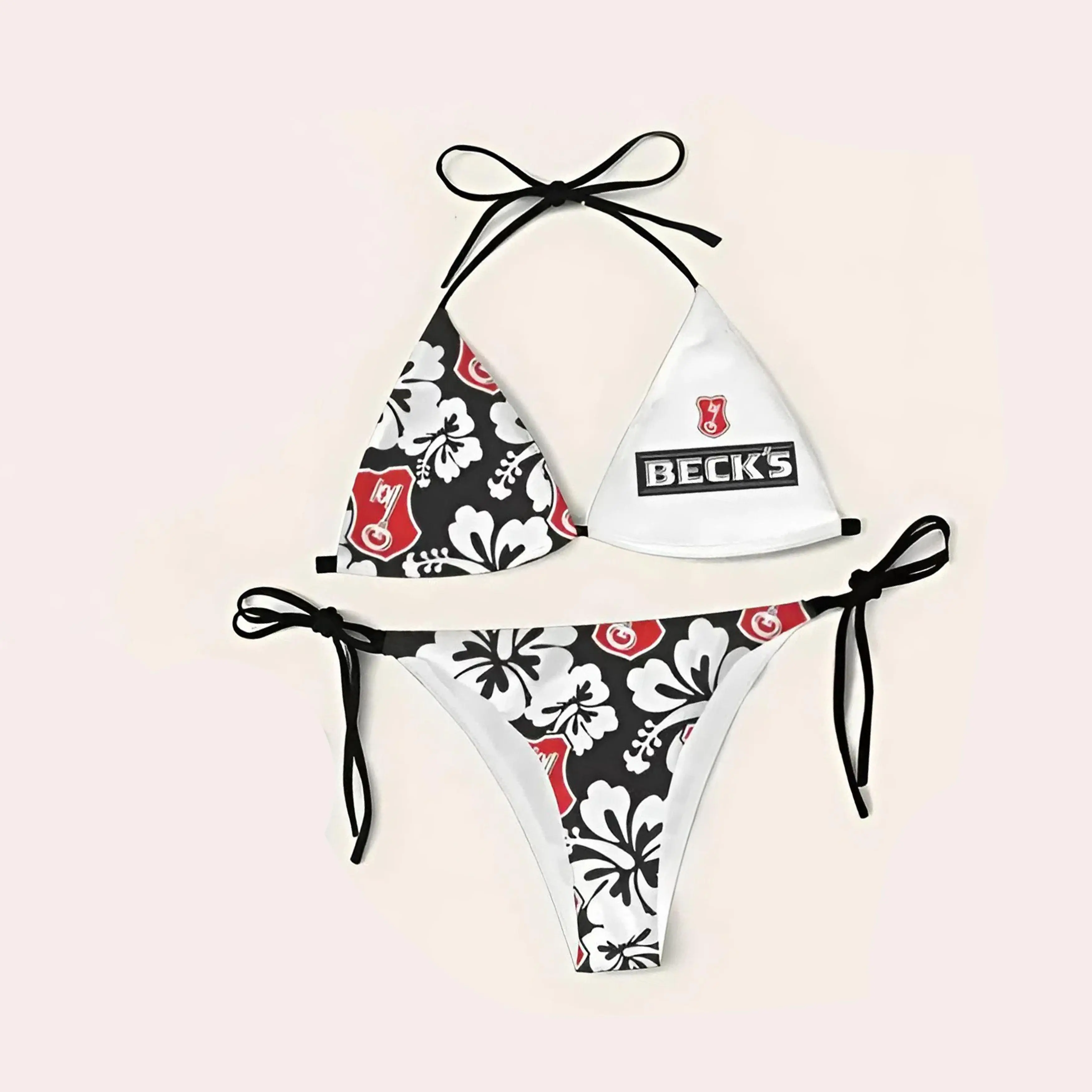·Two-piece design with classic triangle bikini top and matching string-tie bottoms