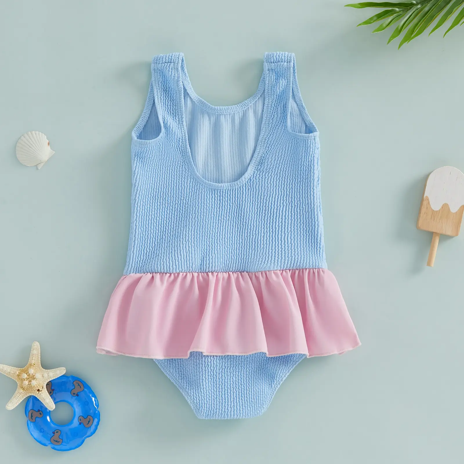 Toddler Girls Swimsuit Romper Patchwork Ruffles Beachwear Sleeveless Summer Beach Bathing Suit
