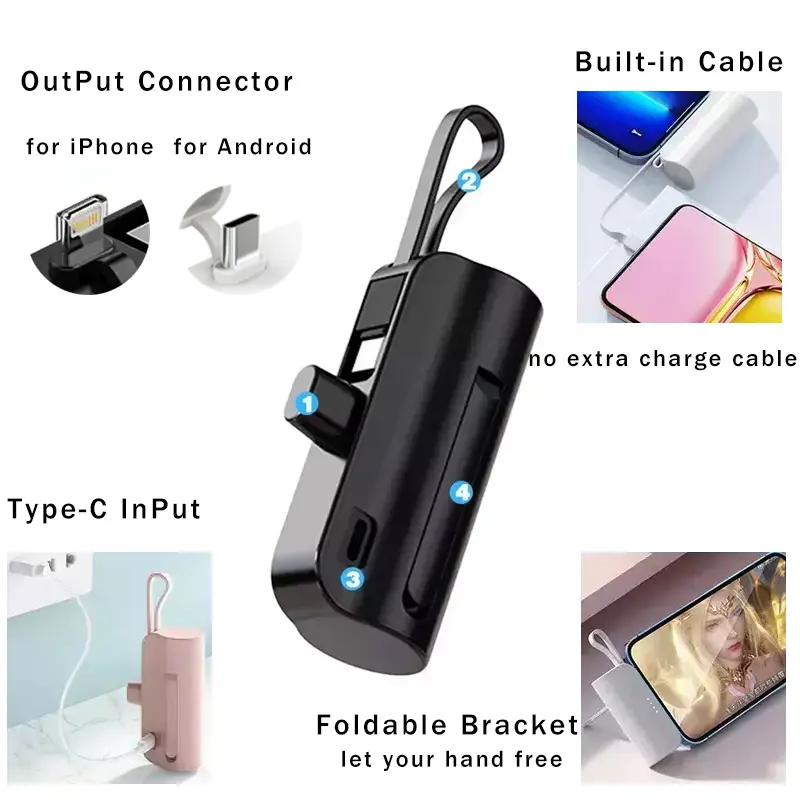 Stay powered wherever you go with this compact capsule-style mini power bank, designed for convenience, portability, and reliable fast charging. Its built-in charging cable eliminates the need to carry extra cords, making it the perfect everyday power solution for travel, work, or daily use.