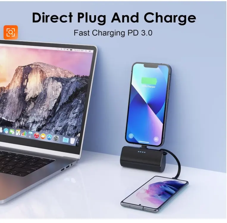 The power bank features a Type-C input/output port and a built-in Lightning cable, allowing you to charge a wide range of devices including smartphones, earbuds, and other USB-powered gadgets. With fast-charging support up to 20W, your devices can recharge quickly and efficiently.