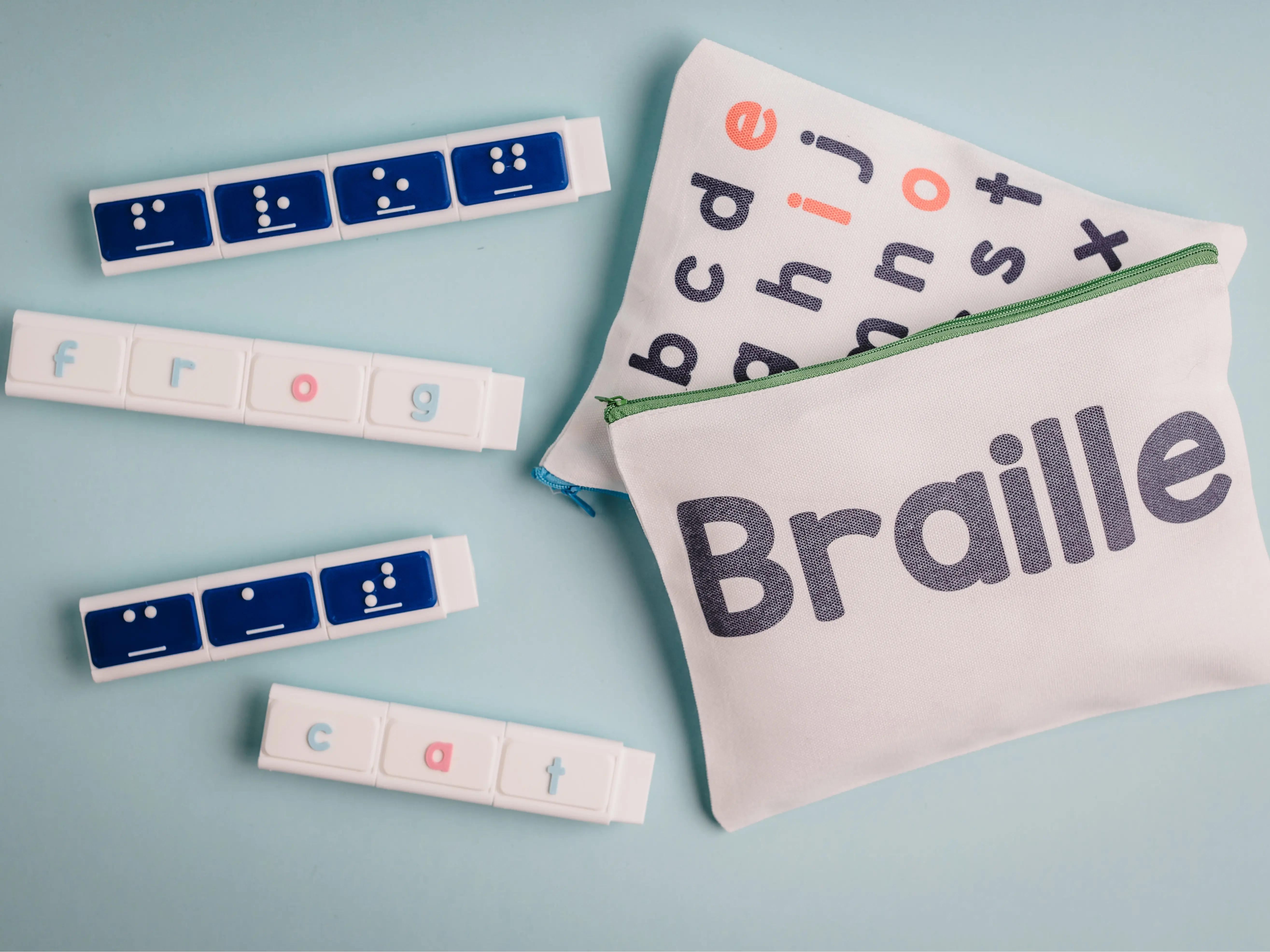 Each Braille set includes one set of Braille a-z and one set of lowercase letters a-z in two labeled bags to make storage and implementation a breeze!