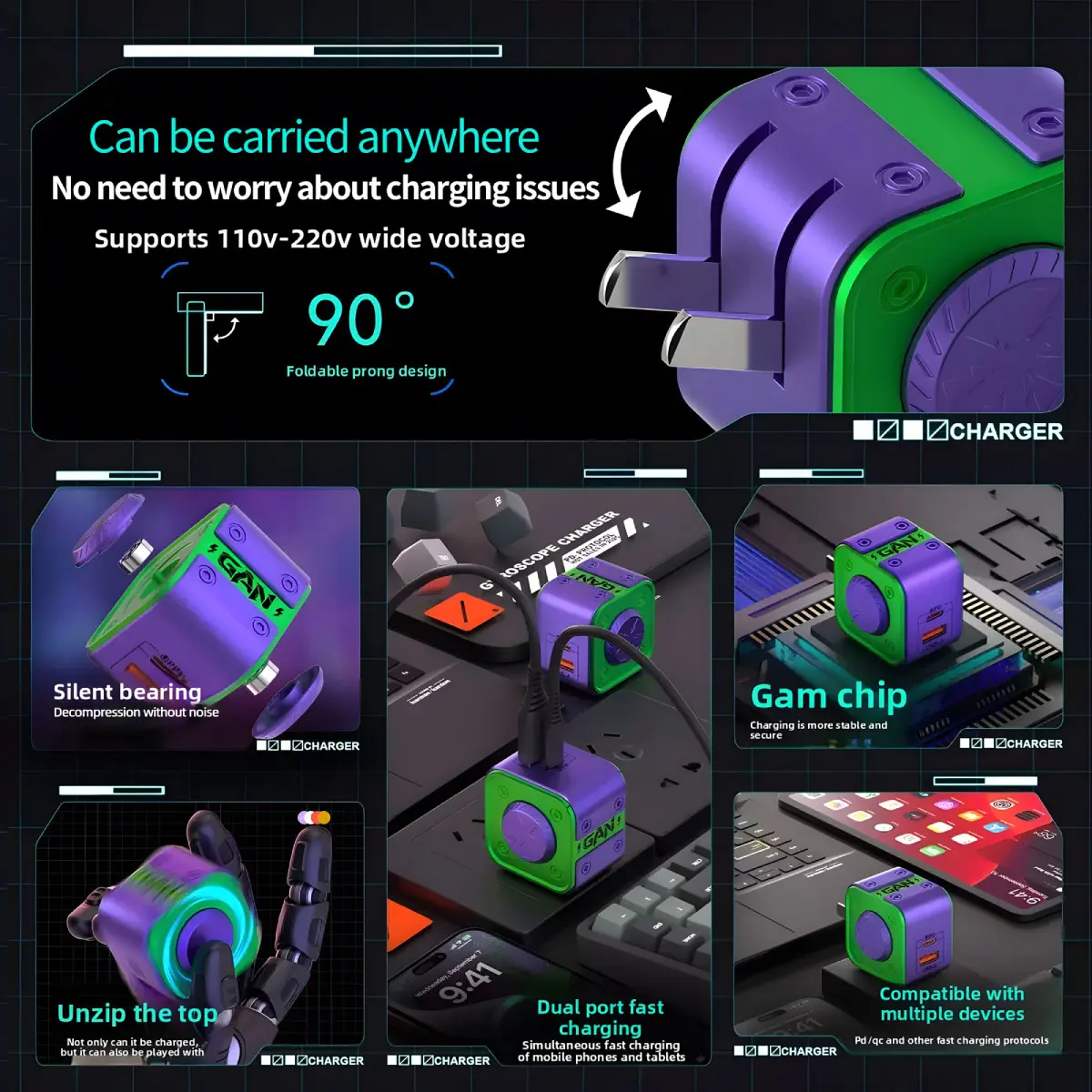 Tired of carrying bulky chargers that overheat and tangle? Meet the most interesting charger you'll ever own – a 120W dual-port fast charger shaped like a fidget spinner. It's compact, fun to use, and built to keep all your devices powered up.