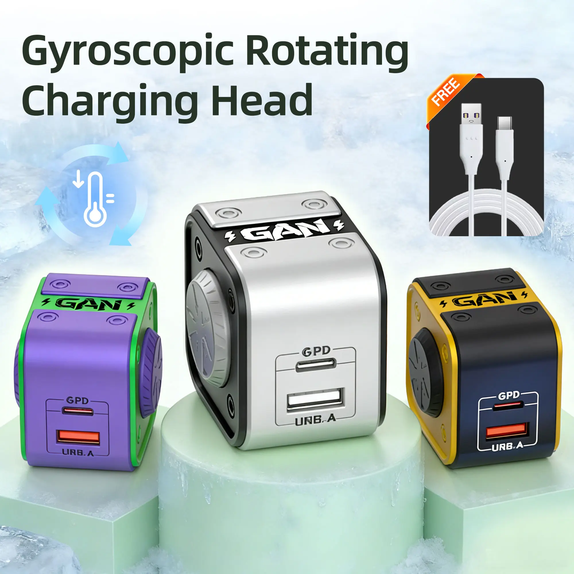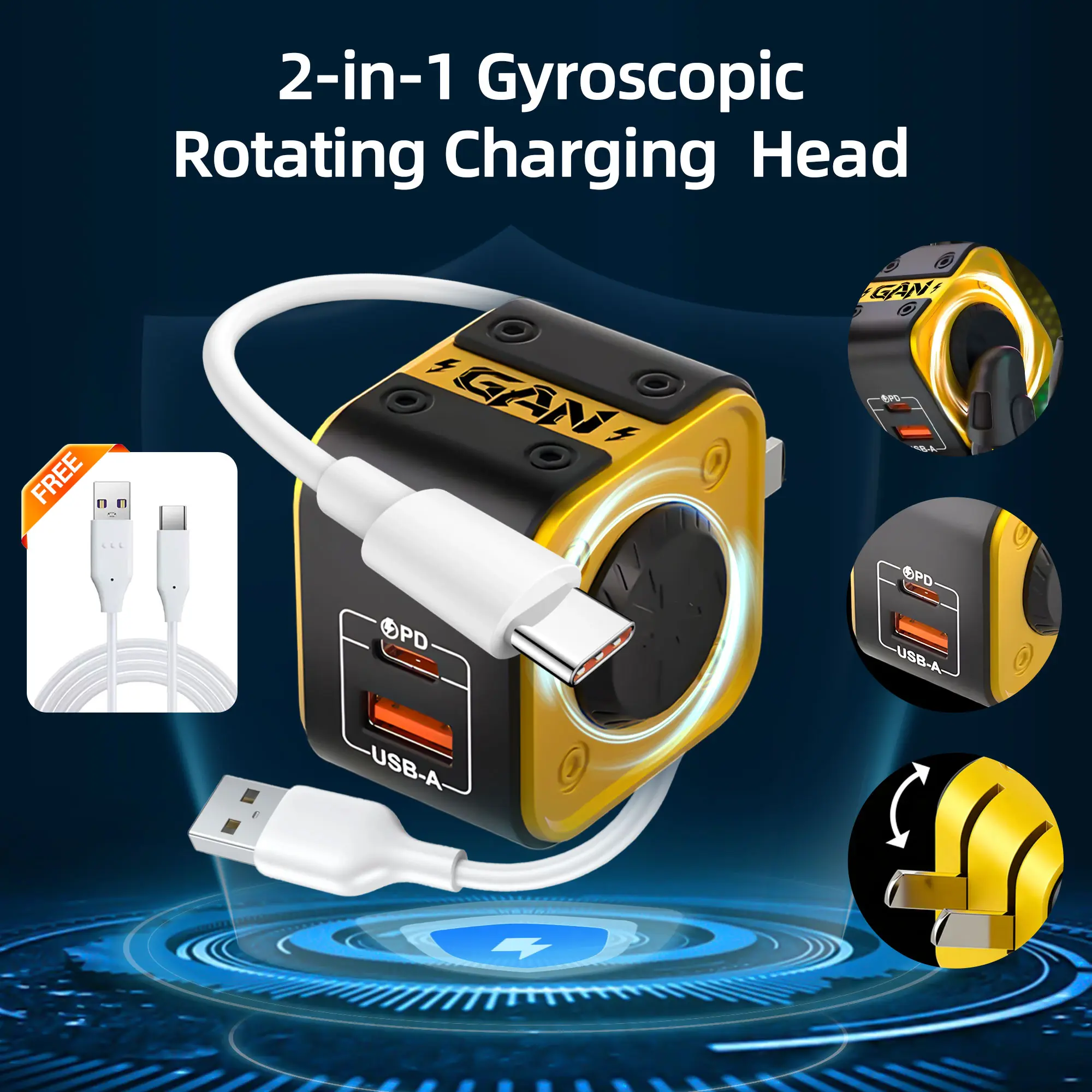 120W Dual-Port Fast Charger – Fidget Spinner Design with Built-in Cable