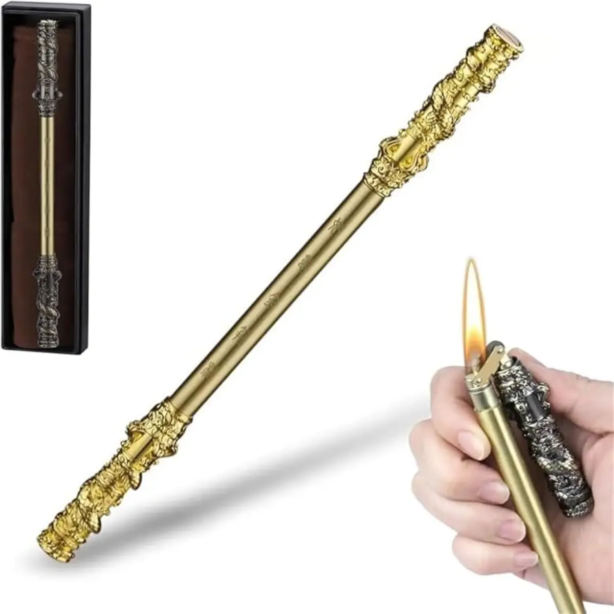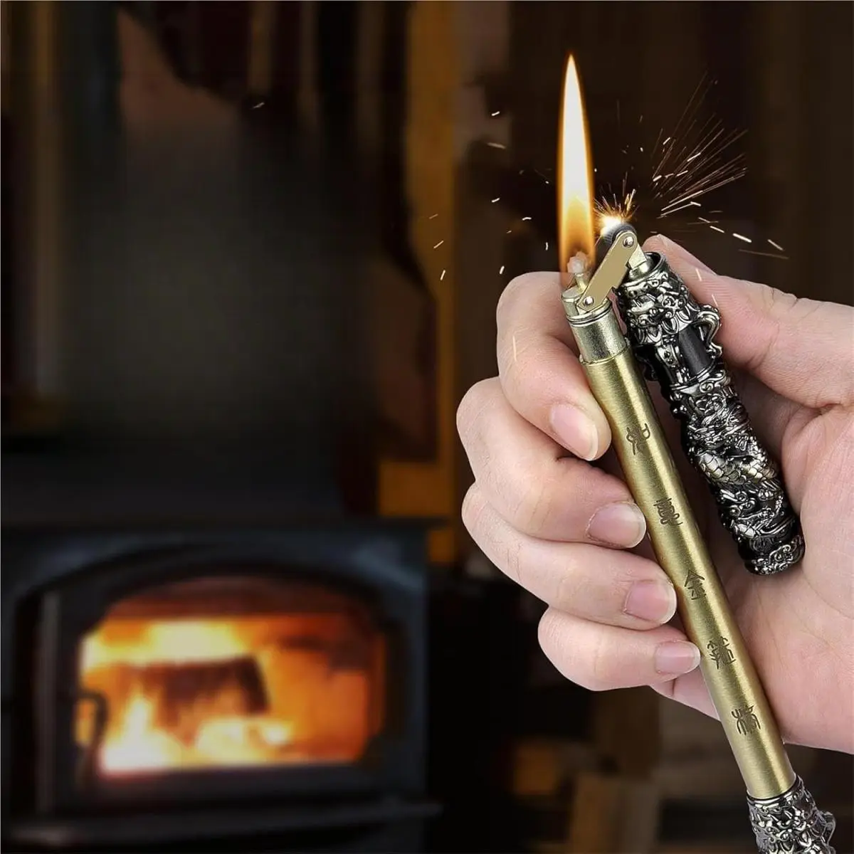 Retro Bronze Brass Nunchaku Kerosene Lighter Rotatable Decompression Rod Cool Wukong Design Rare Flame Gadget Large Oil Tank Novelty Collectible For Men BBQ Camping Outdoor Gift(NO Fuel)