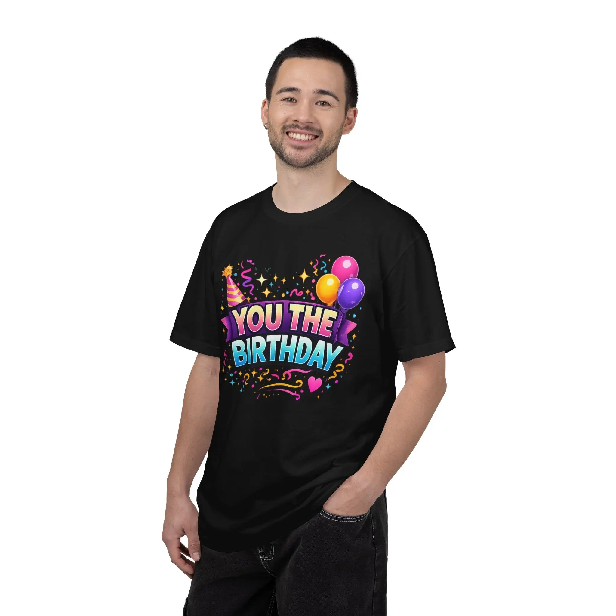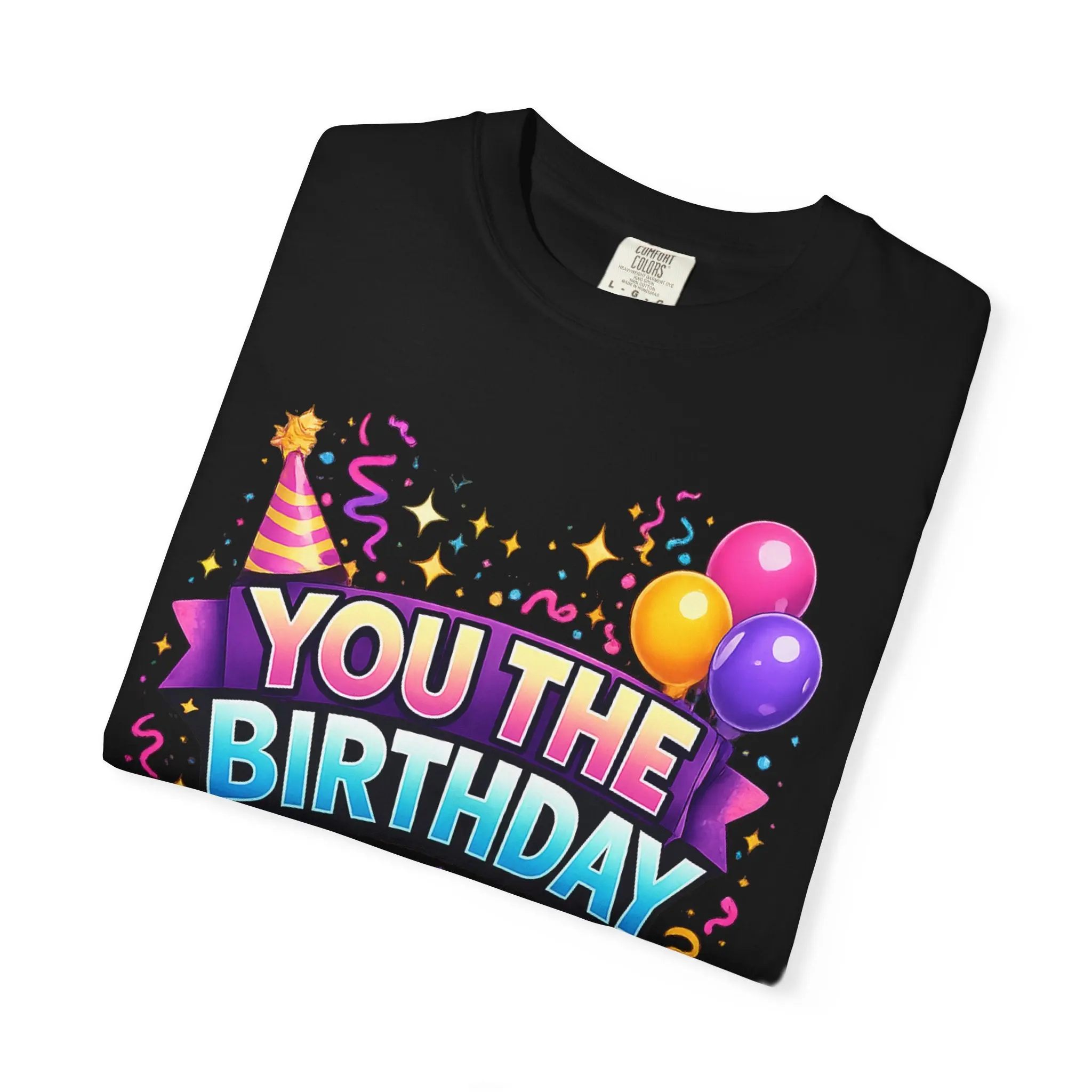 This garment-dyed tee brings playful birthday energy to relaxed, everyday wear. Soft, lived-in cotton and a heavyweight, relaxed cut make it feel like a favorite right away. Bright, celebratory artwork — confetti, balloons, and a cheeky “YOU THE BIRTHDAY” headline — pops against the deep, vintage-like color of the fabric. It works for low-key parties, family gatherings, or anyone who likes to celebrate with a wink. The roomy fit and substantial fabric drape casually over jeans or party shorts; the sewn-in label and durable double-needle seams mean it stands up to repeat wears and washes while keeping its soft texture. Available in a wide range of colors and sizes, this shirt is for people who want comfort and personality in equal measure on birthday outings and small celebrations.