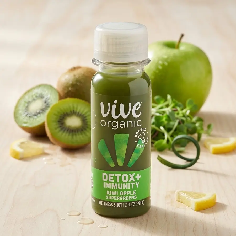 Vive Organic Kiwi Apple Supergreens Detox + Immunity Wellness Shot is your go-to for a refreshing boost. This shot combines the natural goodness of kiwi and apple with supergreens for a detoxifying and immunity-boosting effect. Perfect for those seeking a natural way to enhance their wellness routine.